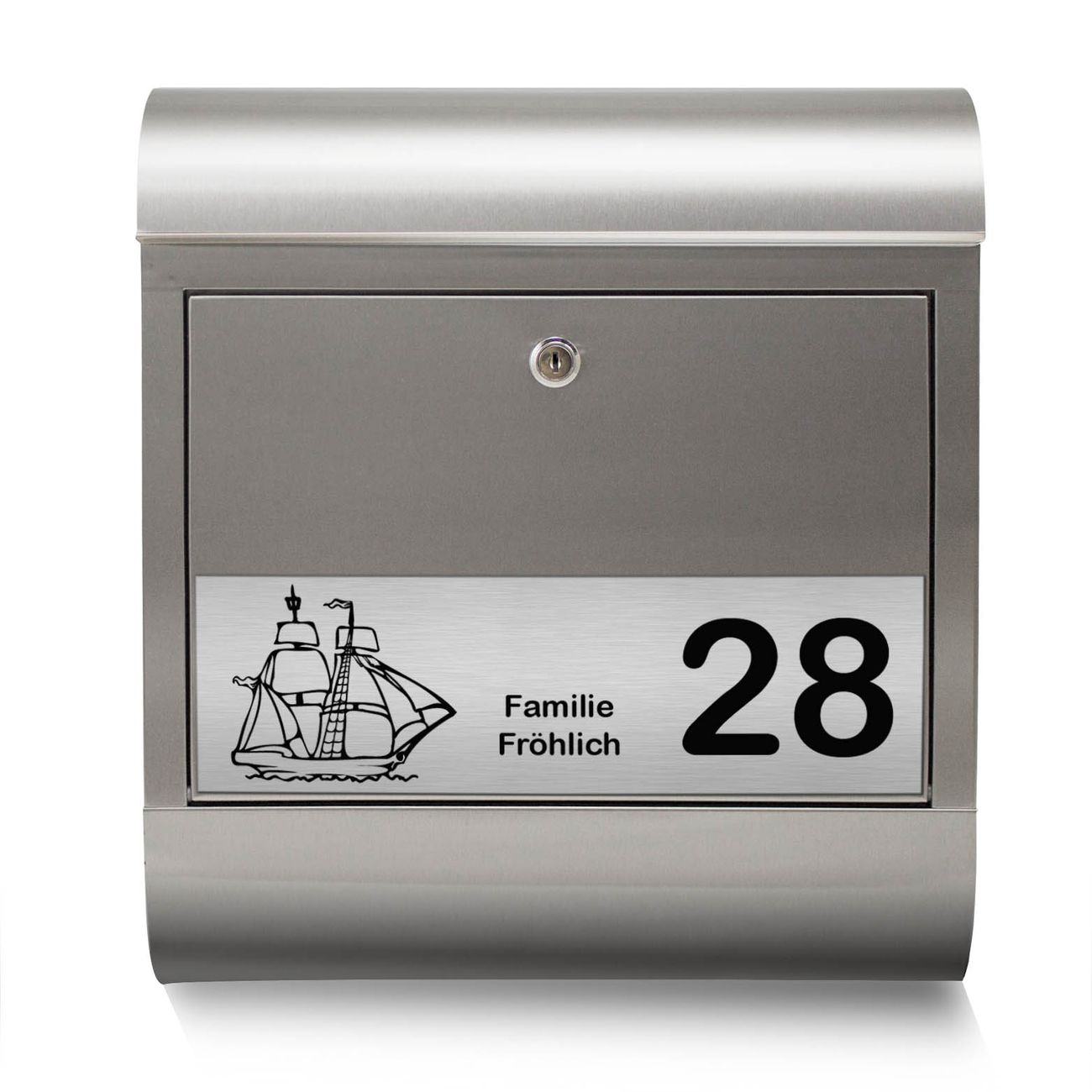 Wandbriefkasten Edelstahl mit Gravur Schiff