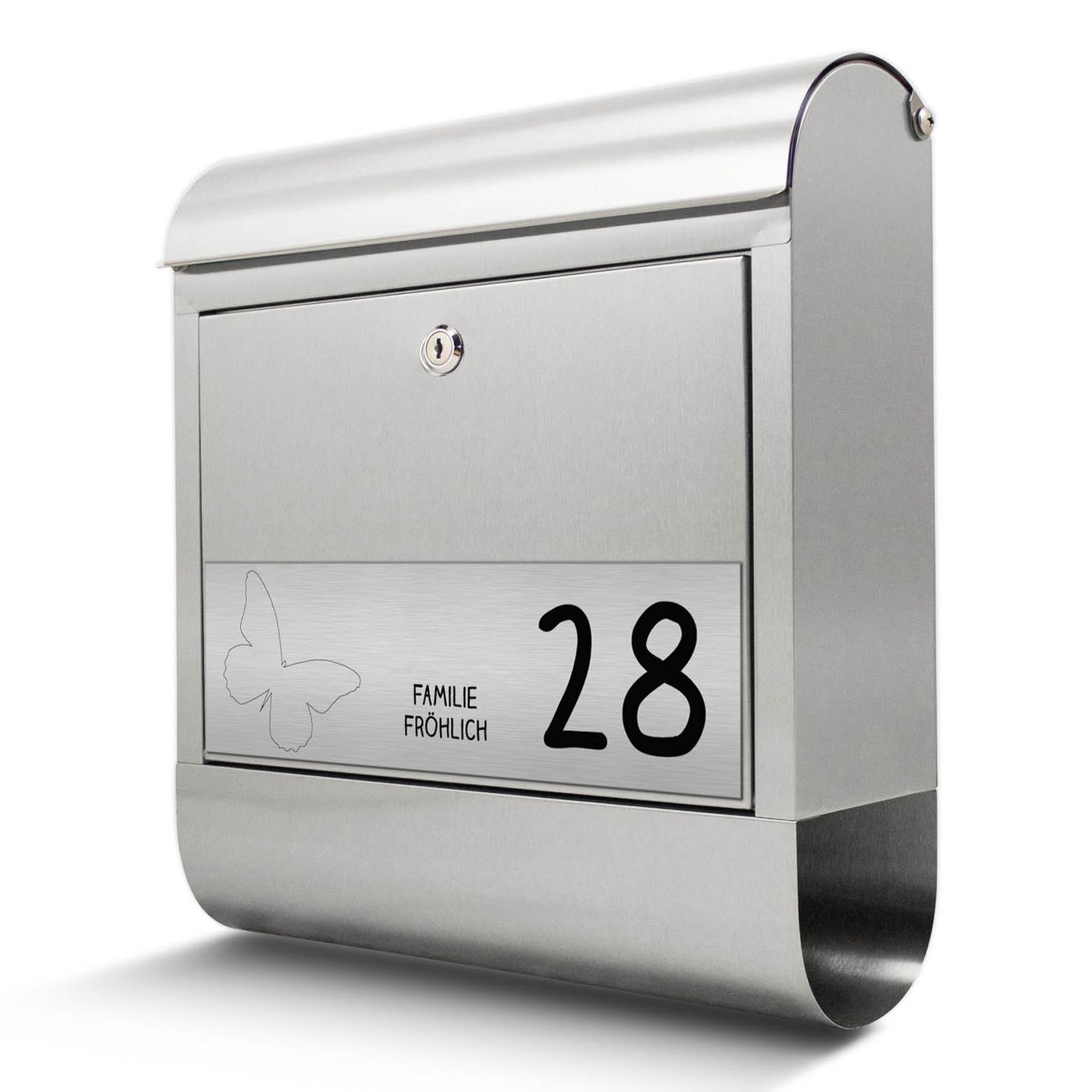 Der Briefkasten mit Gravur hat ein sehr ansprechendes und ausgefallenes Design, damit entlocken Sie Ihren Nachbarn und dem Postboten ein Lächeln. Der Design Briefkasten mit dem Gravur Motiv Schmetterling besteht aus hochwertigem 18/0 Edelstahl und wird mit Montagematerial und zwei Schlüsseln geliefert. Die Größe bietet genügend Platz für Sendungen aller Art, das hochwertige Edelstahl ist rostfrei und wetterfest.