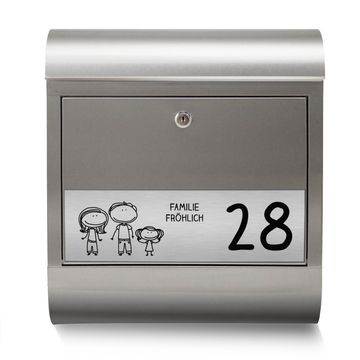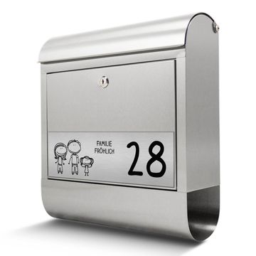 Wandbriefkasten Edelstahl mit Gravur Vater, Mutter, Mädchen