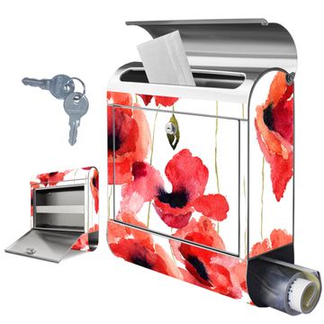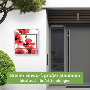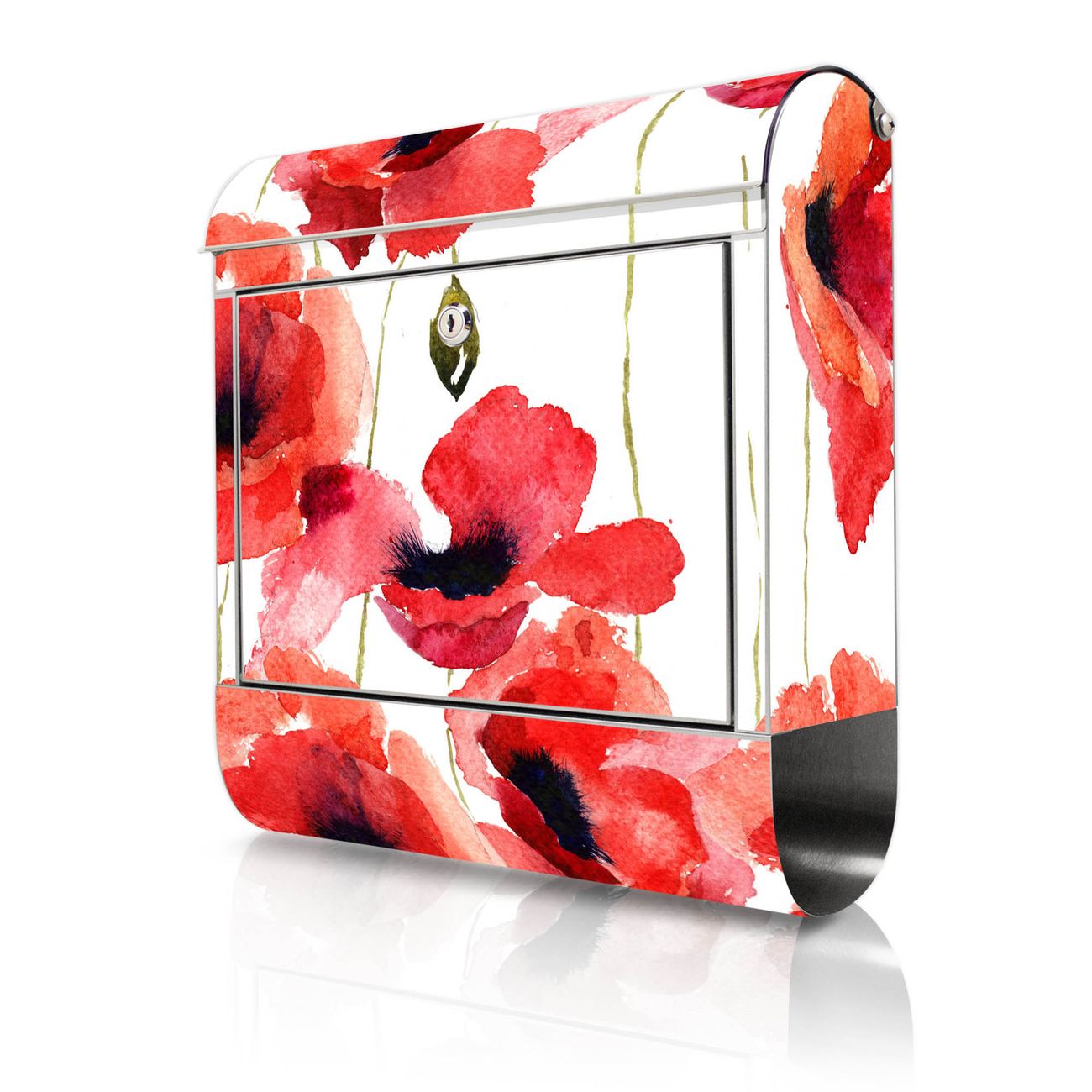 Wandbriefkasten Edelstahl Motiv Mohn Aquarell
