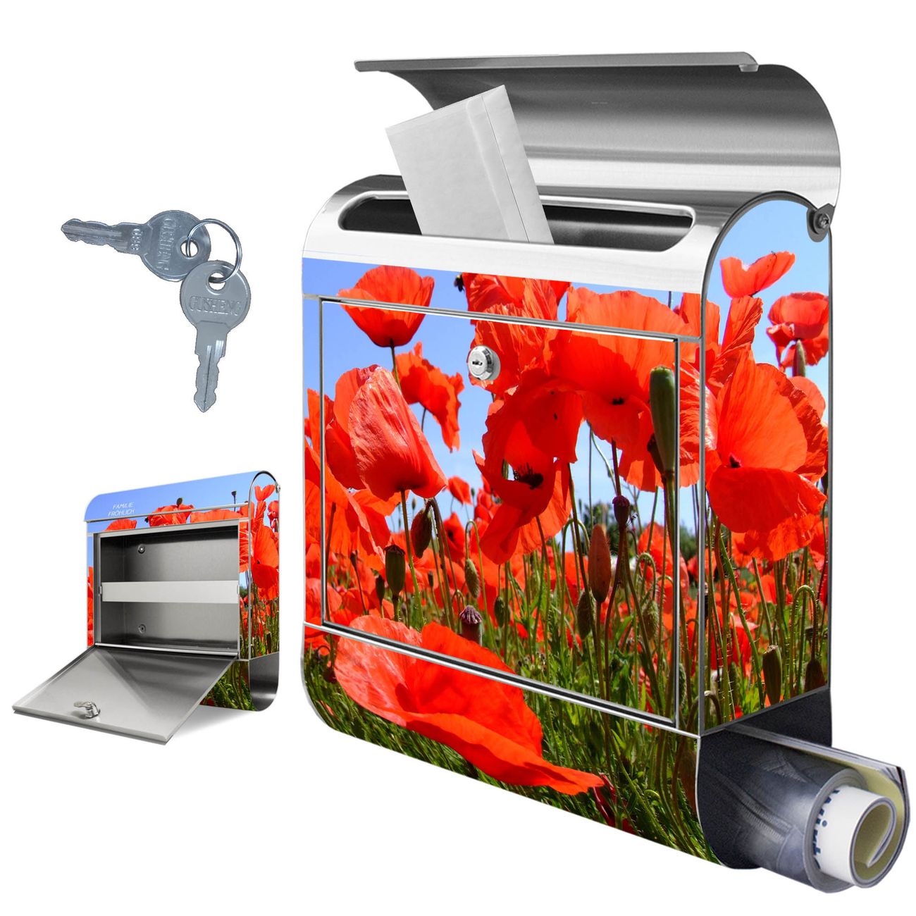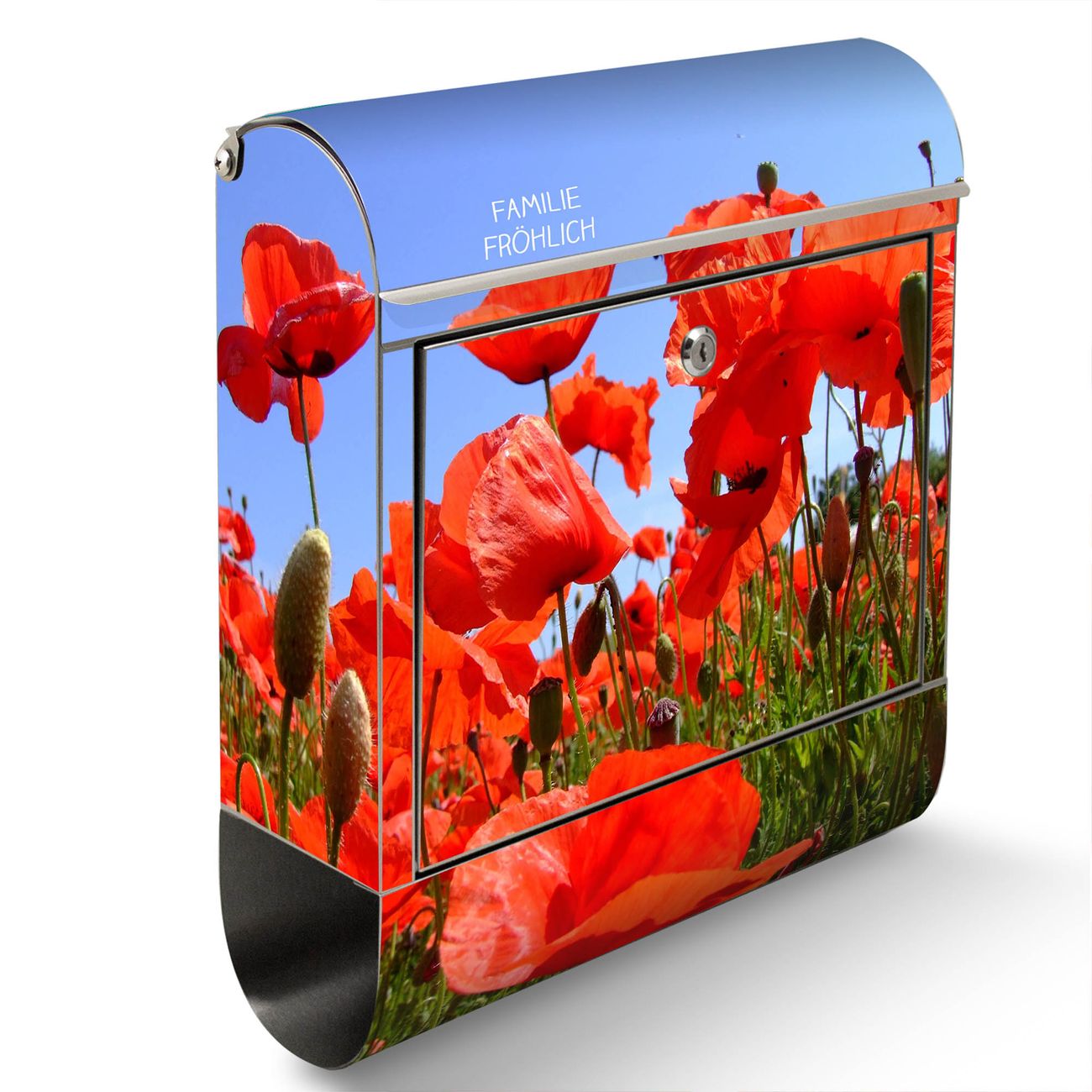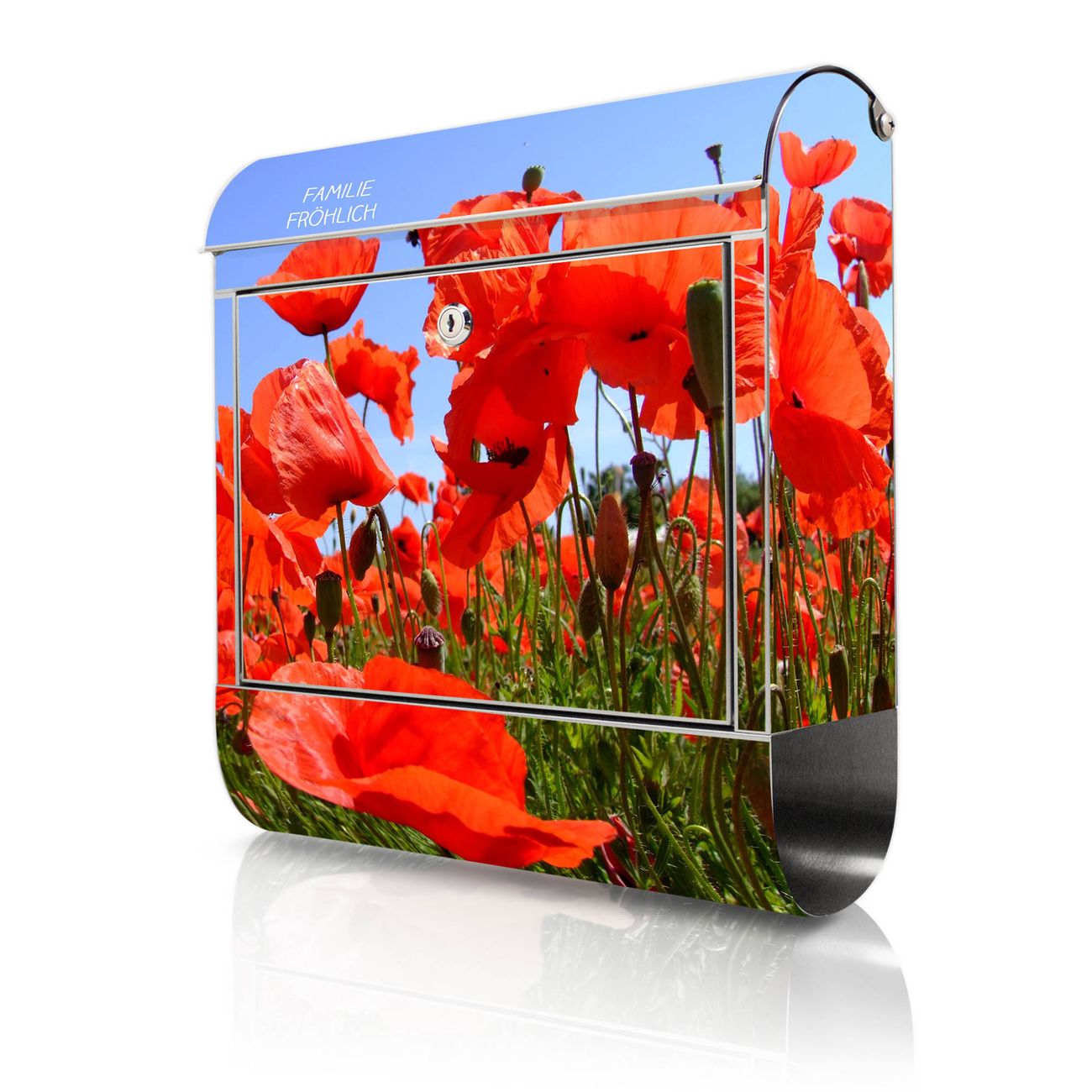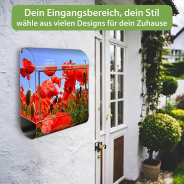 Wandbriefkasten Edelstahl Motiv Mohnblumen