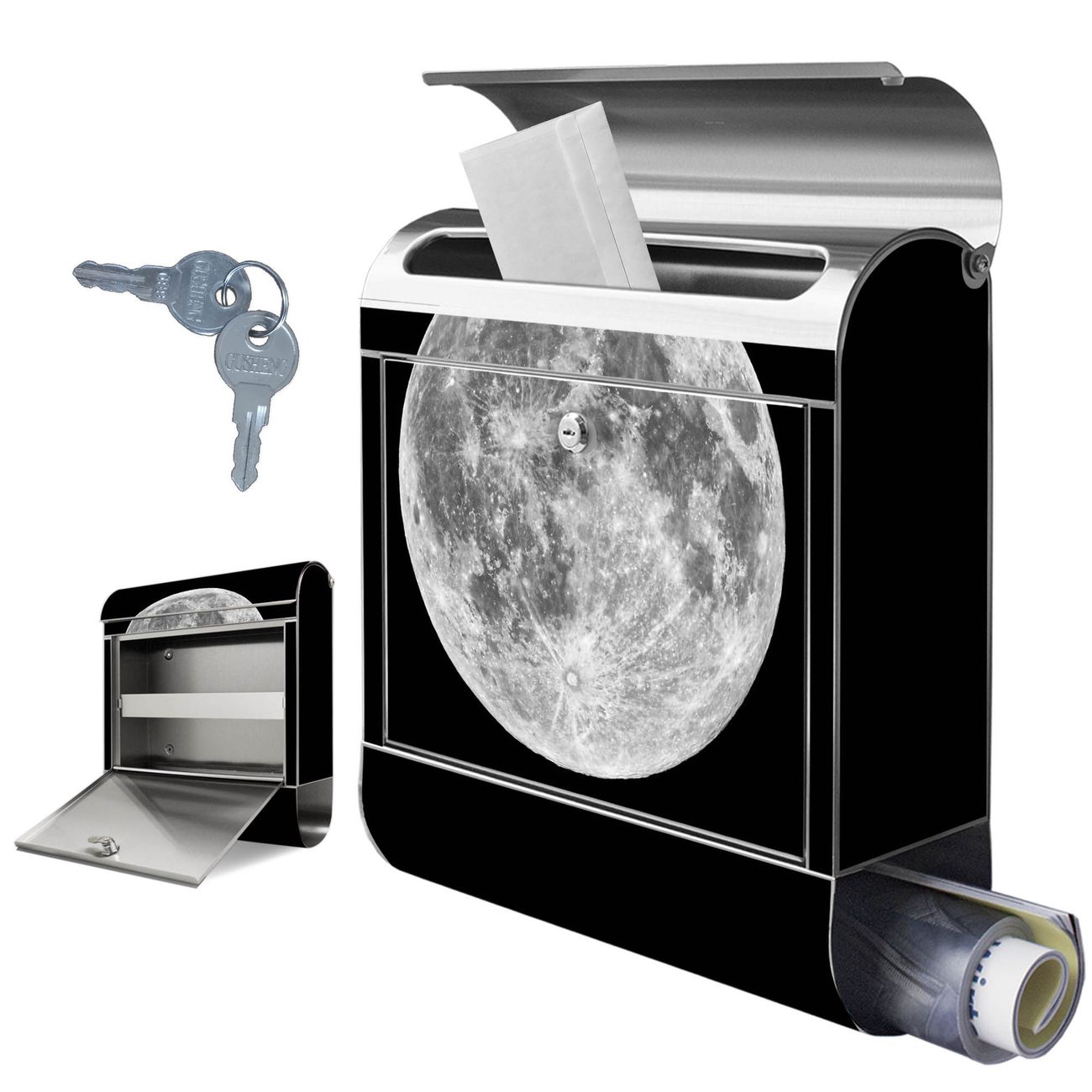 Wandbriefkasten Edelstahl Motiv Mond