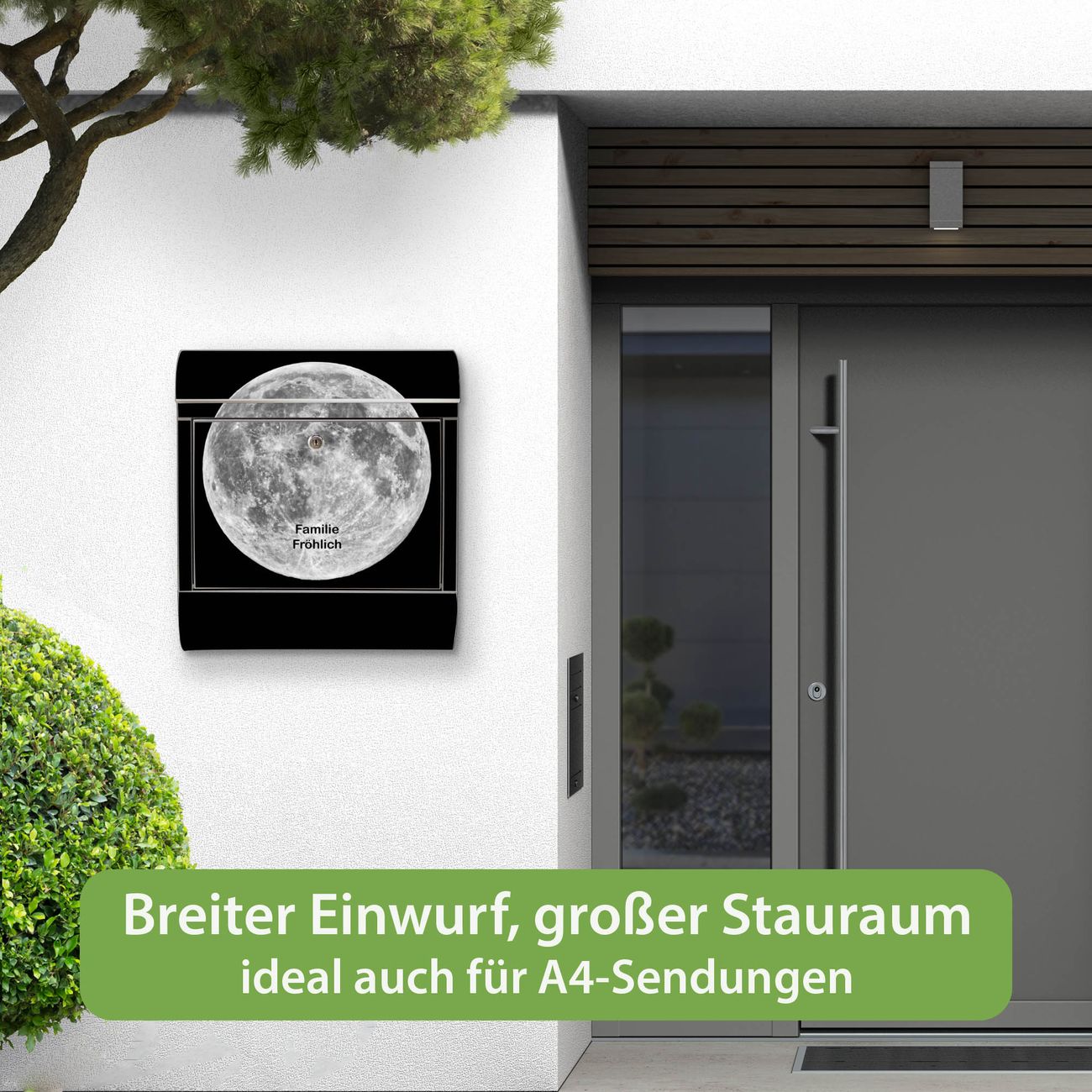 Wandbriefkasten Edelstahl Motiv Mond