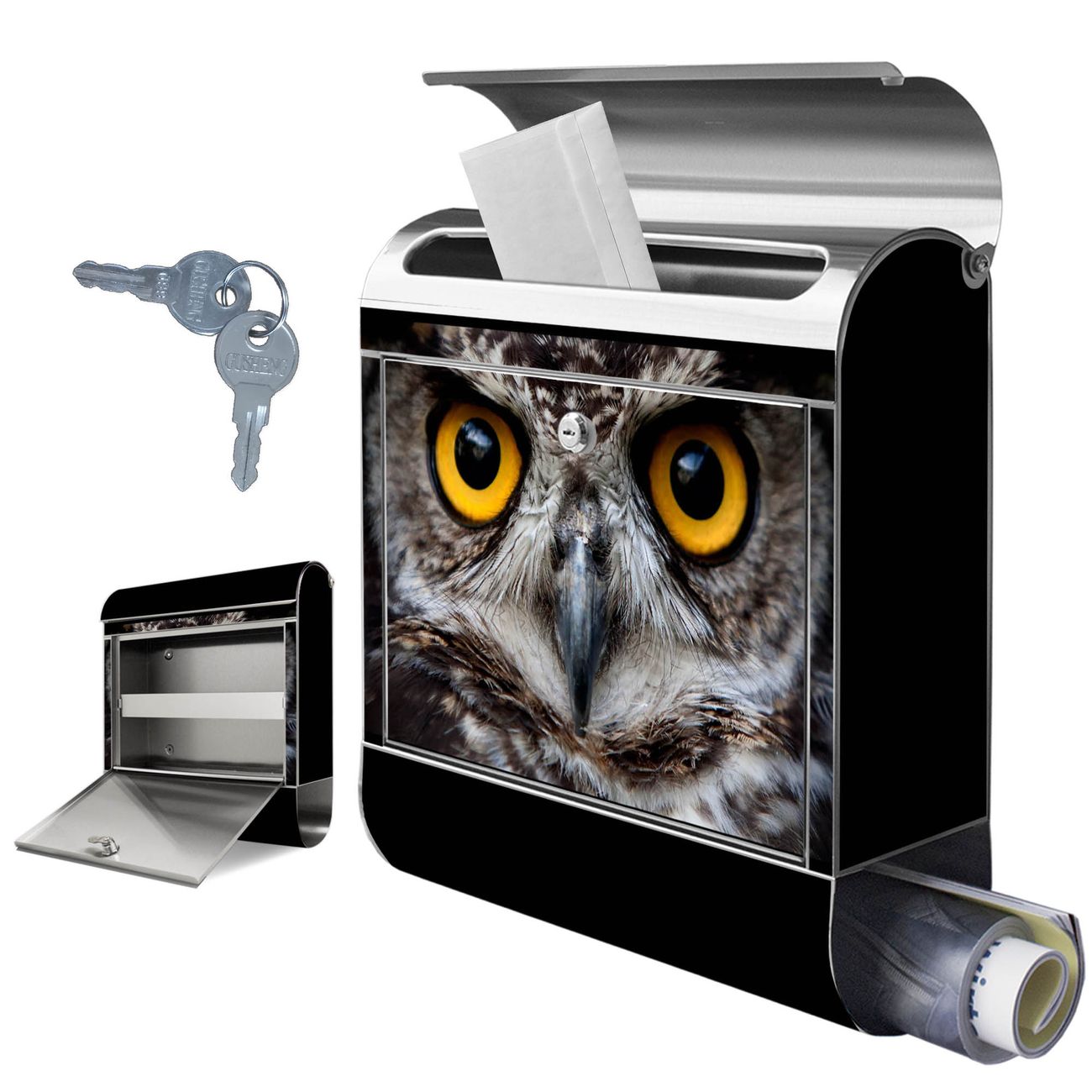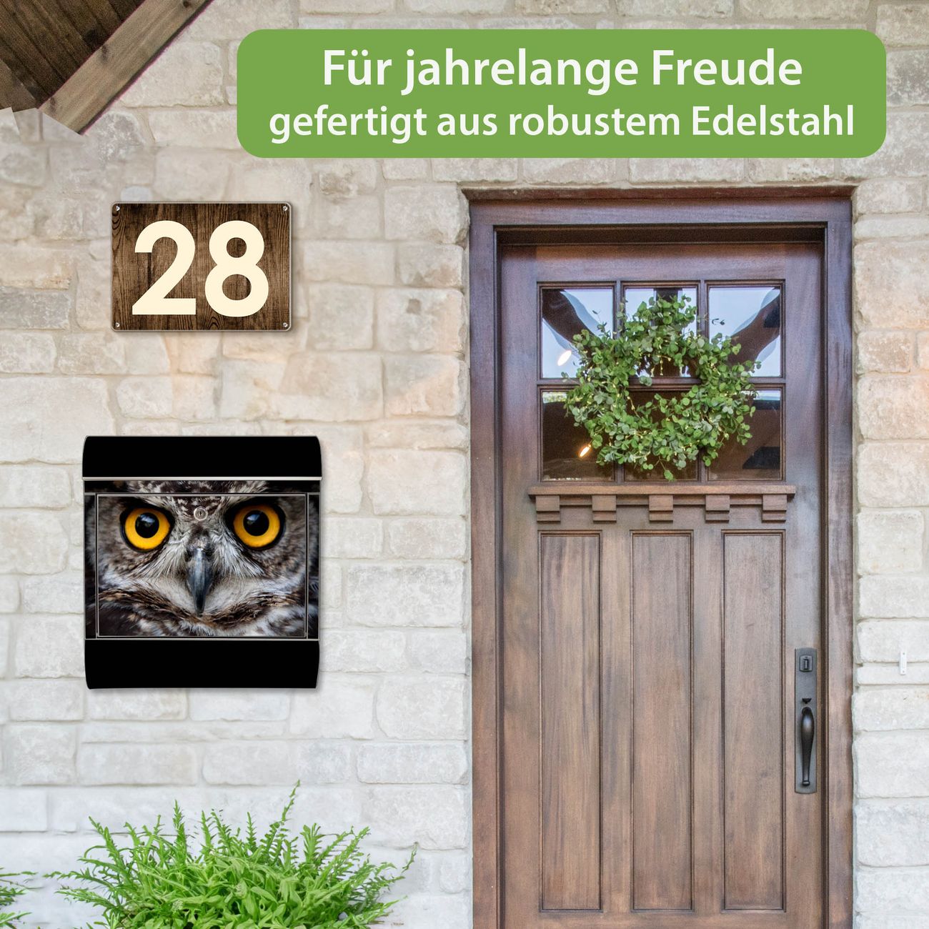 FUNKTION: Der banjado Edelstahl Briefkasten mit Motiv Motiv Monique bietet Ihnen mit seinem Fassungsvermögen genügend Platz auch für große A4 Sendungen. Das integrierte Zeitungsfach eignet sich hervorragend um unkompliziert die Tageszeitung zu fassen. Auf Wunsch können Sie bei uns den passenden Ständer kaufen und so aus dem Wandbriefkasten einen Standbriefkasten machen. DESIGN: Der Motivbriefkasten hat ein sehr ansprechendes und ausgefallenes Design, damit entlocken Sie Ihren Nachbarn und dem Postboten ein Lächeln. Heben Sie Sich ab von der tristen grauen Masse ohne auf Funktionalität zu verzichten. DETAILS: Der Design Briefkasten mit Motiv Motiv Monique besteht aus hochwertigem 18/0 Edelstahl. Das Motiv besteht aus einer wetter- und UV-resistenten Folie, die mit einem Schutzlaminat überzogen ist. Der Briefkasten wird mit Montagematerial und zwei Schlüsseln geliefert. NUTZEN: Sie können diesen Briefkasten sowohl als Wandbriefkasten montieren oder einen passenden Ständer auswählen und als Standbriefkasten einbetonieren. Die Größe bietet genügend Platz für Sendungen aller Art, das hochwertige Edelstahl ist rostfrei und die Motivfolie absolut wetterfest. SCHUTZ: Um Ihre Post optimal vor Witterungseinflüssen wie Starkregen zu schützen, empfehlen wir, den Briefkasten geschützt anzubringen. BANJADO: Ihr Briefkasten wird in Sachsen in einer kleinen Manufaktur von Hand veredelt. Die Motivfolie ist lösungsmittelfrei und schutzlaminiert, dies sorgt für einen langen Halt. Wir legen großen Wert auf die Verbindung von Funktionalität und Design. Sie erhalten Handarbeit aus Sachsen.