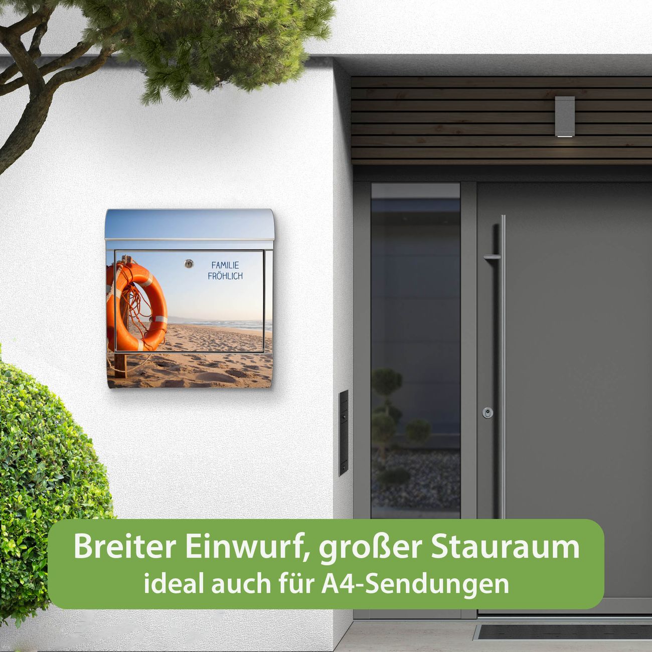 Wandbriefkasten Edelstahl Motiv Morgens Am Strand