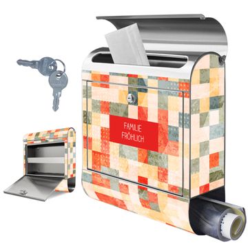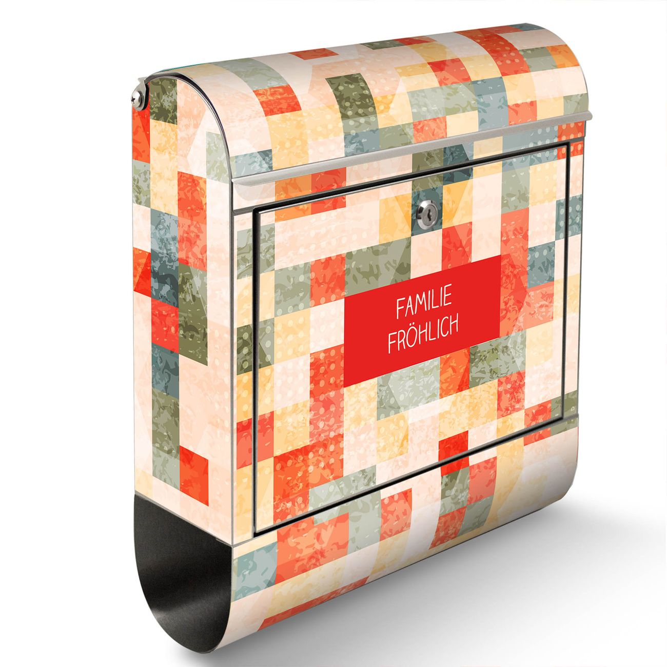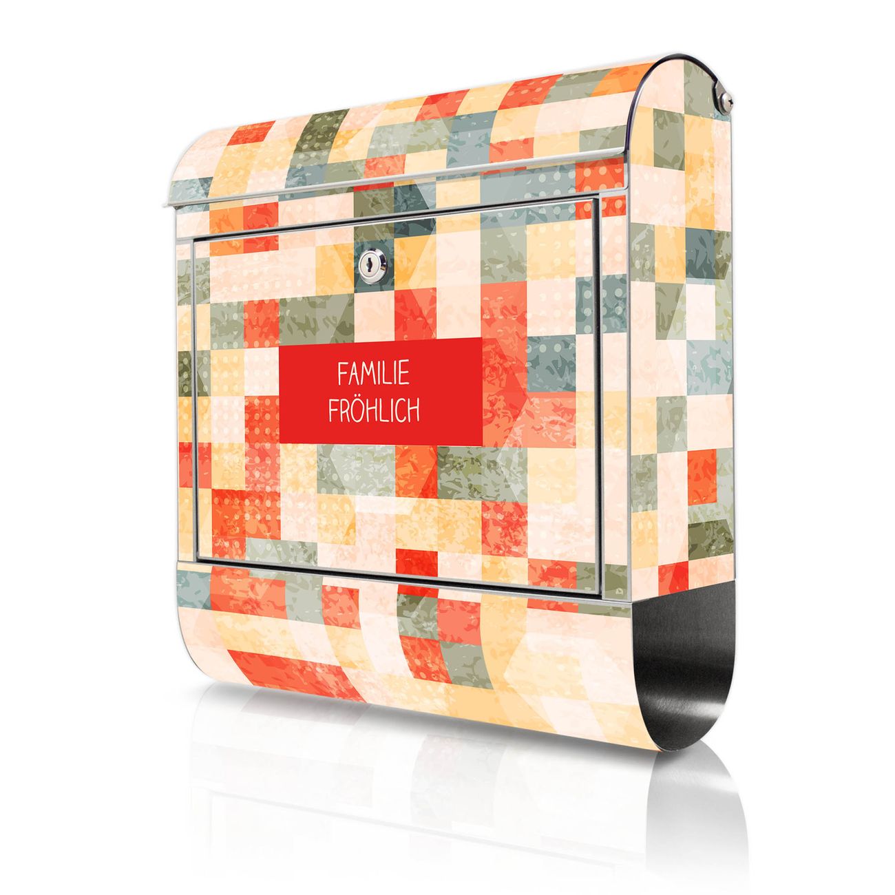 Wandbriefkasten Edelstahl Motiv Mosaik Rot