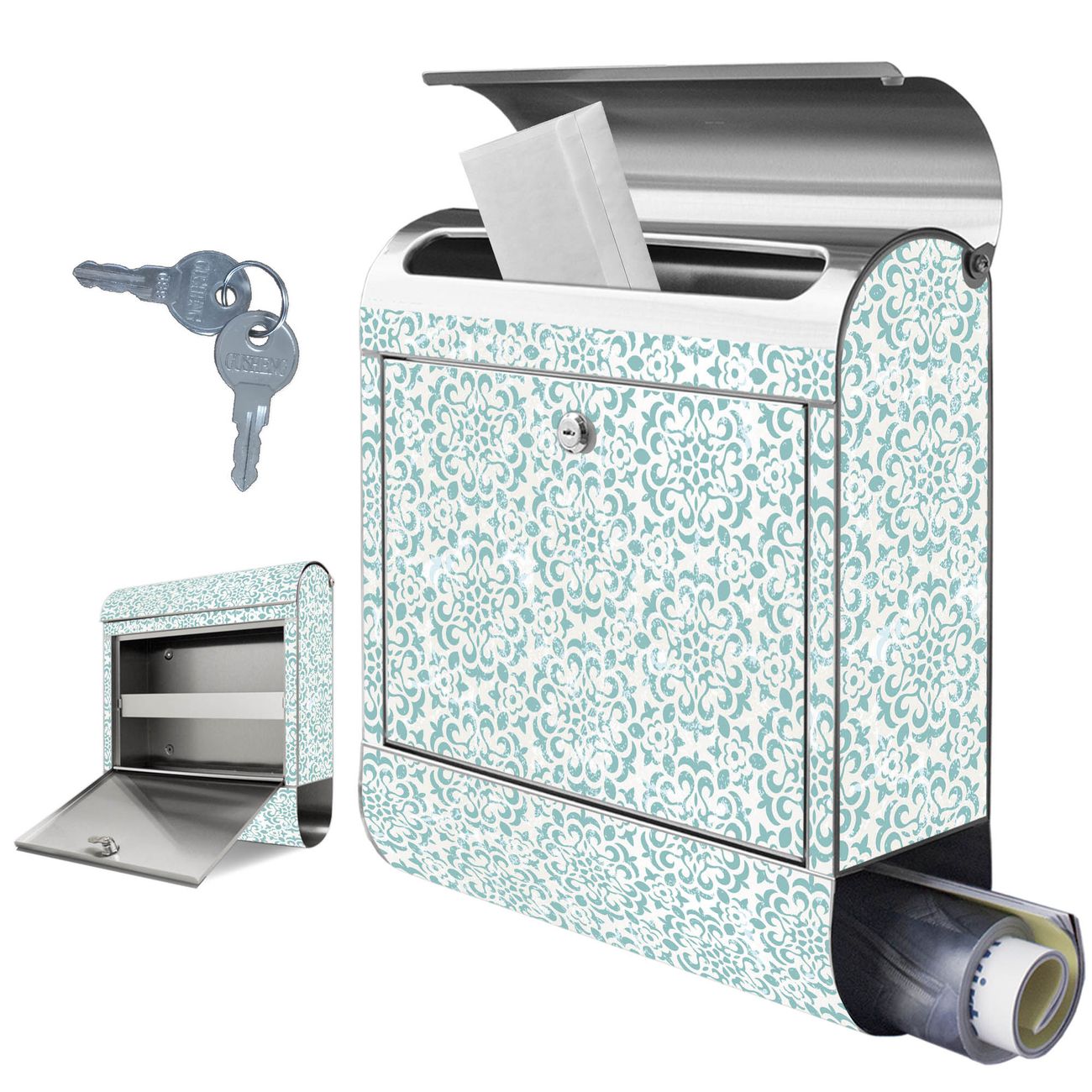 Wandbriefkasten Edelstahl Motiv Muster Getupft Blau