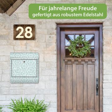 FUNKTION: Der banjado Edelstahl Briefkasten mit Motiv Motiv Muster Getupft Blau bietet Ihnen mit seinem Fassungsvermögen genügend Platz auch für große A4 Sendungen. Das integrierte Zeitungsfach eignet sich hervorragend um unkompliziert die Tageszeitung zu fassen. Auf Wunsch können Sie bei uns den passenden Ständer kaufen und so aus dem Wandbriefkasten einen Standbriefkasten machen. DESIGN: Der Motivbriefkasten hat ein sehr ansprechendes und ausgefallenes Design, damit entlocken Sie Ihren Nachbarn und dem Postboten ein Lächeln. Heben Sie Sich ab von der tristen grauen Masse ohne auf Funktionalität zu verzichten. DETAILS: Der Design Briefkasten mit Motiv Motiv Muster Getupft Blau besteht aus hochwertigem 18/0 Edelstahl. Das Motiv besteht aus einer wetter- und UV-resistenten Folie, die mit einem Schutzlaminat überzogen ist. Der Briefkasten wird mit Montagematerial und zwei Schlüsseln geliefert. NUTZEN: Sie können diesen Briefkasten sowohl als Wandbriefkasten montieren oder einen passenden Ständer auswählen und als Standbriefkasten einbetonieren. Die Größe bietet genügend Platz für Sendungen aller Art, das hochwertige Edelstahl ist rostfrei und die Motivfolie absolut wetterfest. SCHUTZ: Um Ihre Post optimal vor Witterungseinflüssen wie Starkregen zu schützen, empfehlen wir, den Briefkasten geschützt anzubringen. BANJADO: Ihr Briefkasten wird in Sachsen in einer kleinen Manufaktur von Hand veredelt. Die Motivfolie ist lösungsmittelfrei und schutzlaminiert, dies sorgt für einen langen Halt. Wir legen großen Wert auf die Verbindung von Funktionalität und Design. Sie erhalten Handarbeit aus Sachsen.