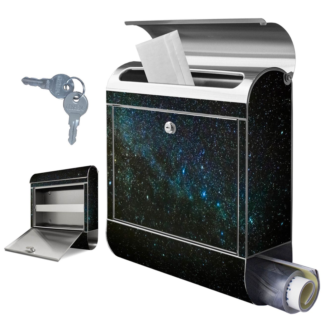 Wandbriefkasten Edelstahl Motiv Nachthimmel