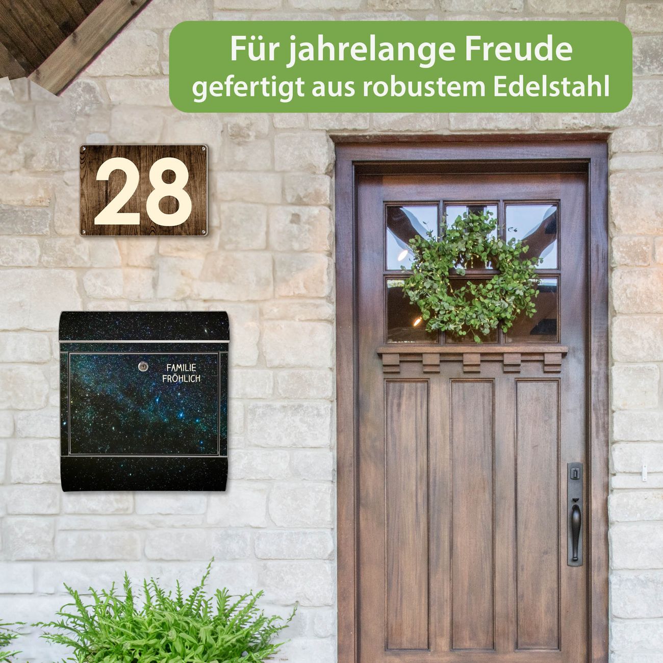 Der Vorschau-Text Familie Fröhlich wird durch Ihren persönlichen Wunschtext ersetzt. Die Schriftart und Farbe bleiben gleich wie in der Vorschau.