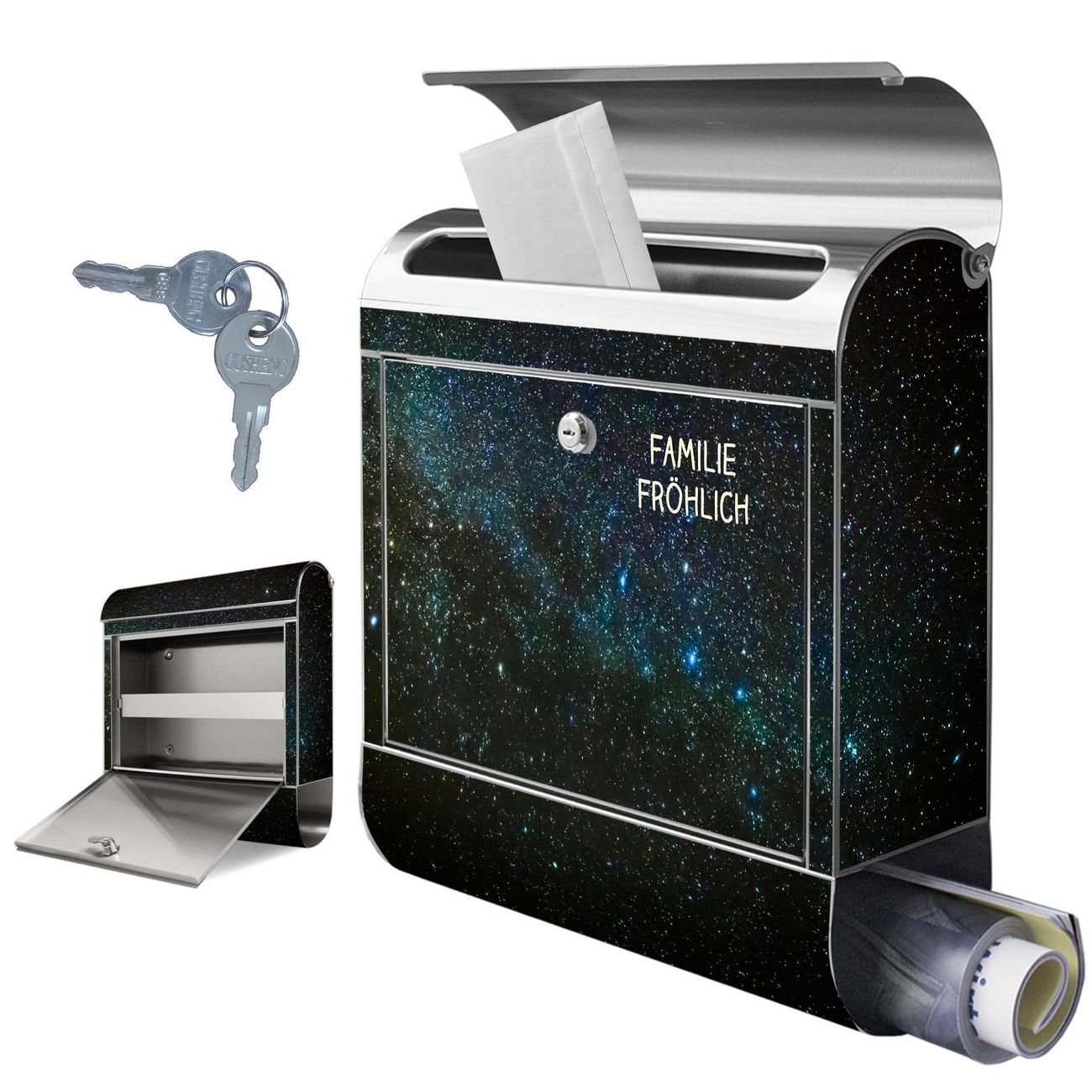 Wandbriefkasten Edelstahl Motiv Nachthimmel