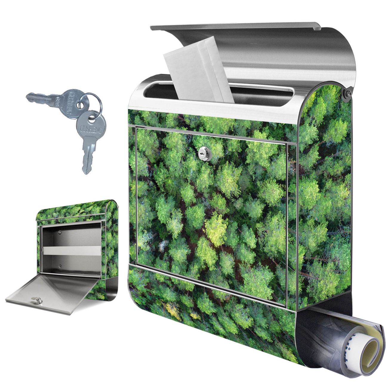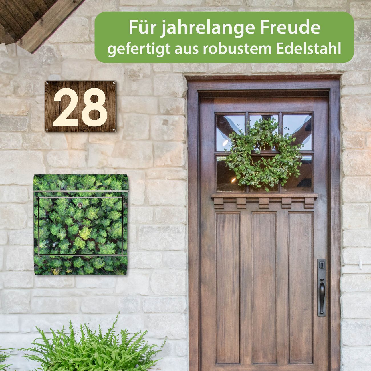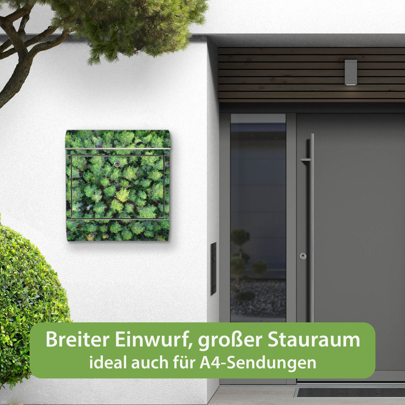 Wandbriefkasten Edelstahl Motiv Nadelwald