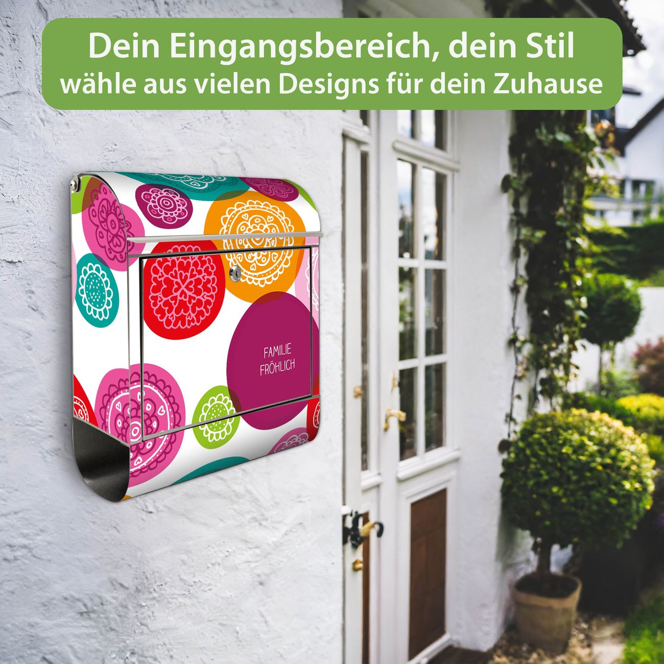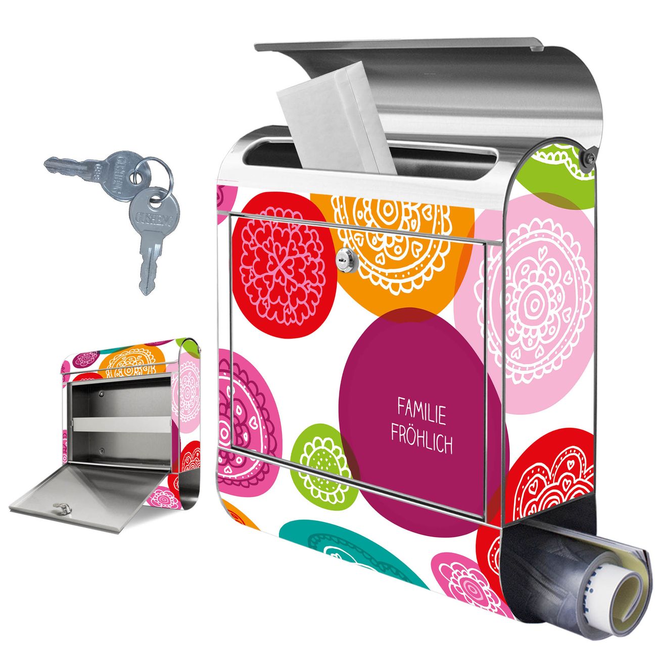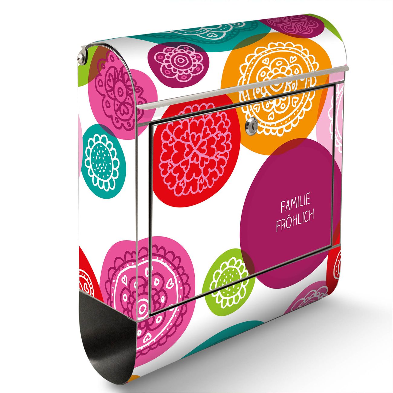 Wandbriefkasten Edelstahl Motiv Naive Blüten