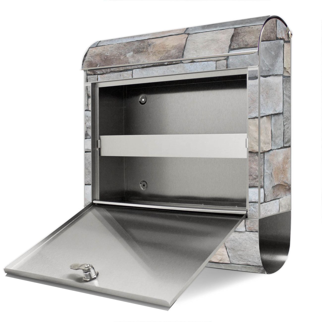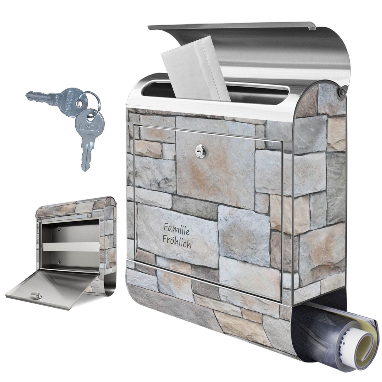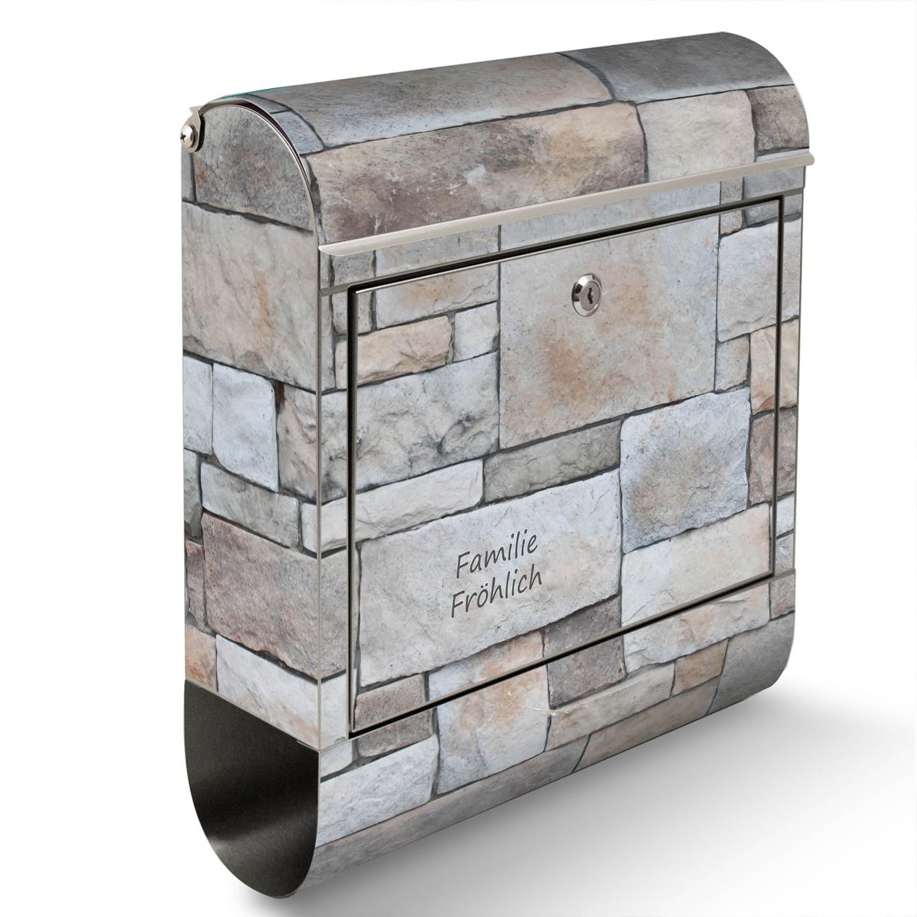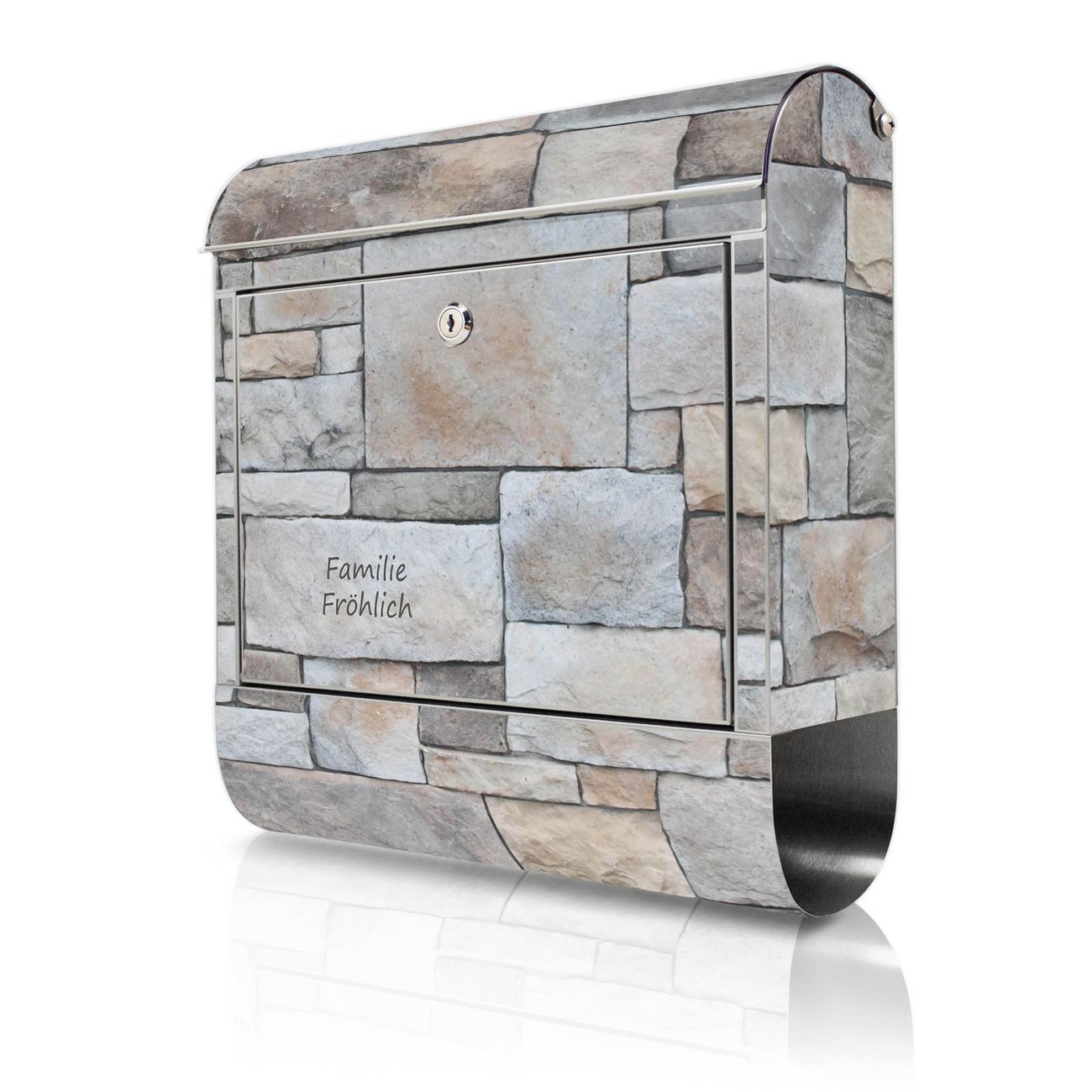 Wandbriefkasten Edelstahl Motiv Natursteinmauer