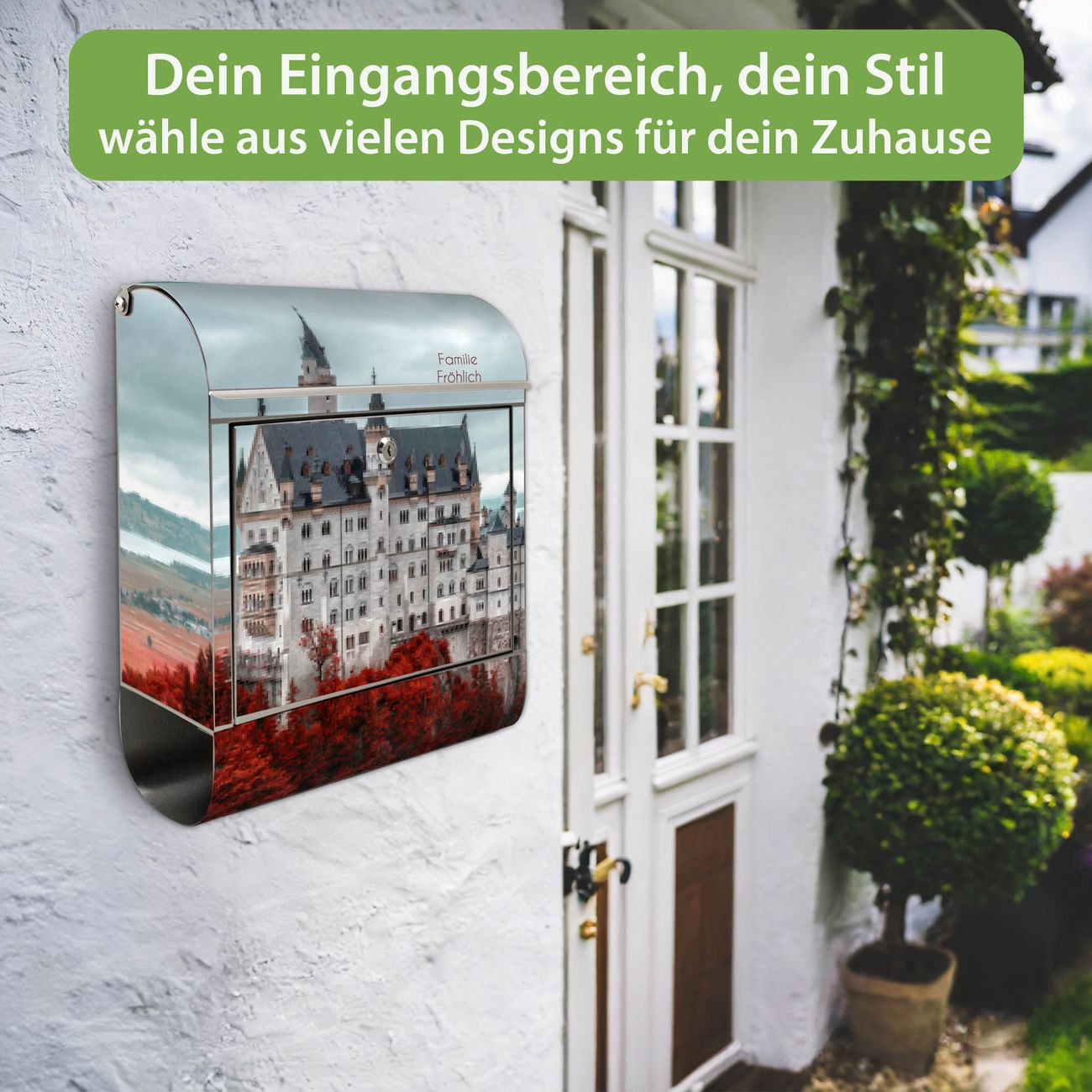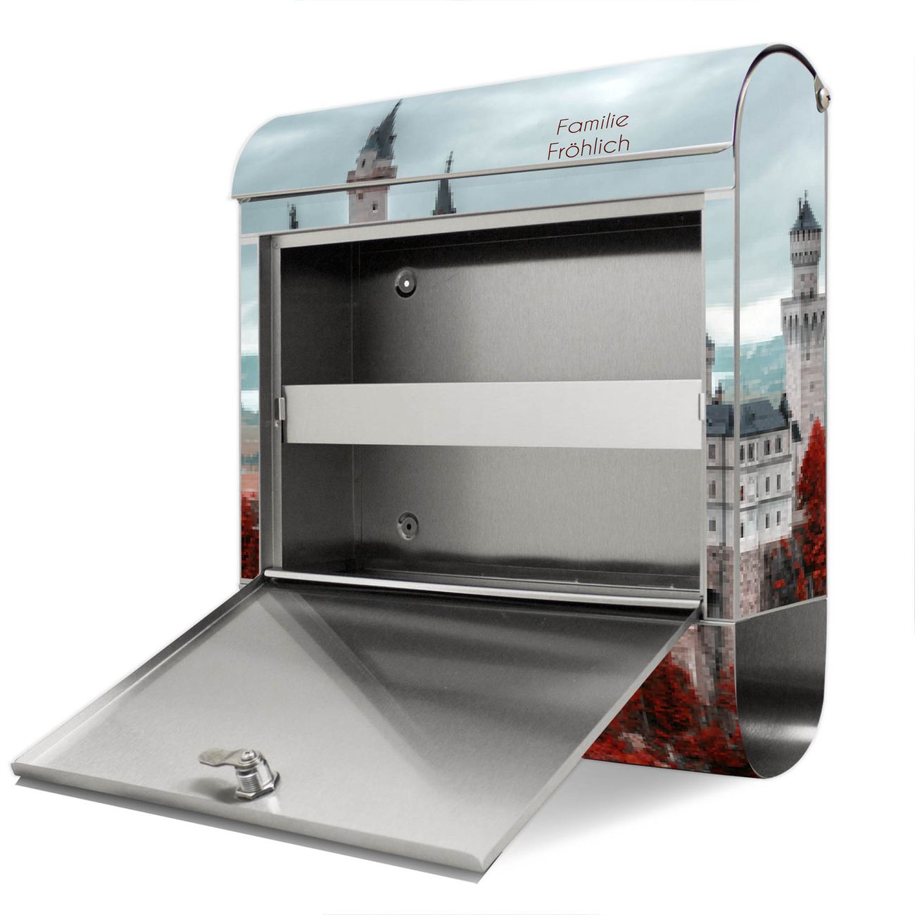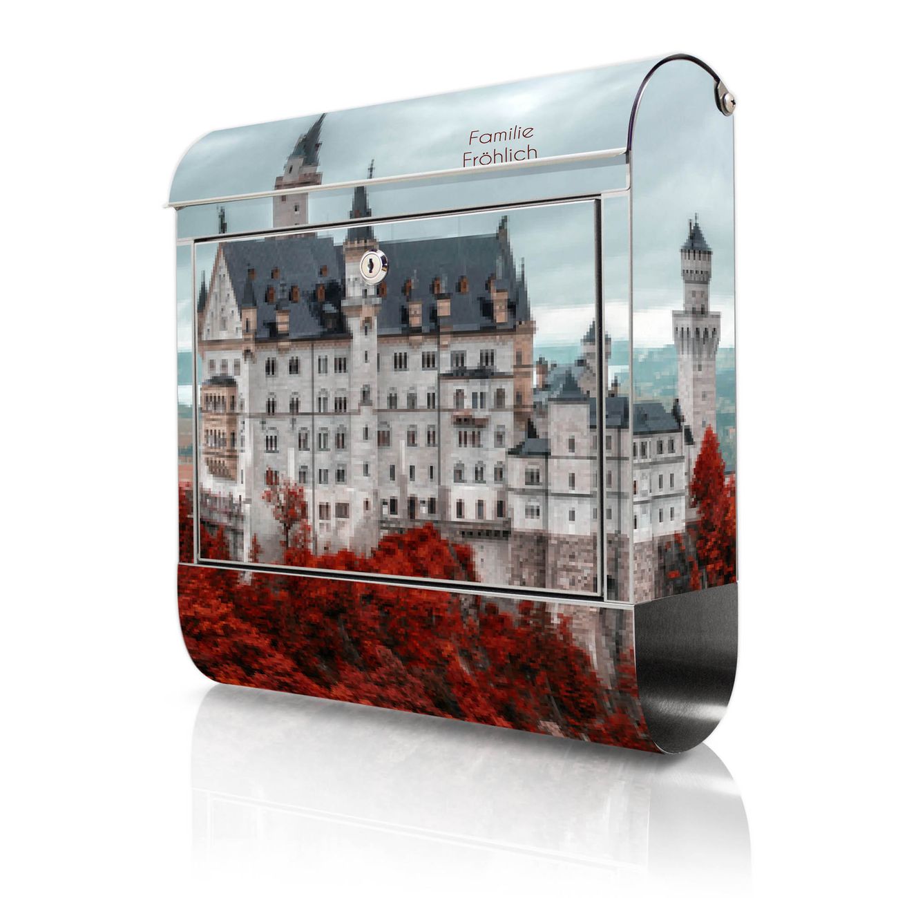 Wandbriefkasten Edelstahl Motiv Neuschwanstein