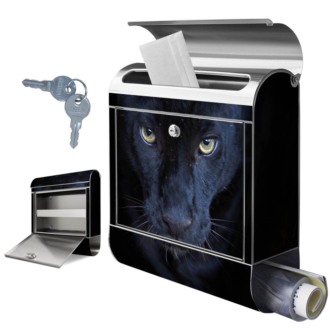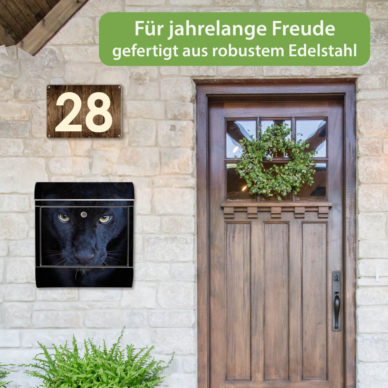 FUNKTION: Der banjado Edelstahl Briefkasten mit Motiv Motiv Nora bietet Ihnen mit seinem Fassungsvermögen genügend Platz auch für große A4 Sendungen. Das integrierte Zeitungsfach eignet sich hervorragend um unkompliziert die Tageszeitung zu fassen. Auf Wunsch können Sie bei uns den passenden Ständer kaufen und so aus dem Wandbriefkasten einen Standbriefkasten machen. DESIGN: Der Motivbriefkasten hat ein sehr ansprechendes und ausgefallenes Design, damit entlocken Sie Ihren Nachbarn und dem Postboten ein Lächeln. Heben Sie Sich ab von der tristen grauen Masse ohne auf Funktionalität zu verzichten. DETAILS: Der Design Briefkasten mit Motiv Motiv Nora besteht aus hochwertigem 18/0 Edelstahl. Das Motiv besteht aus einer wetter- und UV-resistenten Folie, die mit einem Schutzlaminat überzogen ist. Der Briefkasten wird mit Montagematerial und zwei Schlüsseln geliefert. NUTZEN: Sie können diesen Briefkasten sowohl als Wandbriefkasten montieren oder einen passenden Ständer auswählen und als Standbriefkasten einbetonieren. Die Größe bietet genügend Platz für Sendungen aller Art, das hochwertige Edelstahl ist rostfrei und die Motivfolie absolut wetterfest. SCHUTZ: Um Ihre Post optimal vor Witterungseinflüssen wie Starkregen zu schützen, empfehlen wir, den Briefkasten geschützt anzubringen. BANJADO: Ihr Briefkasten wird in Sachsen in einer kleinen Manufaktur von Hand veredelt. Die Motivfolie ist lösungsmittelfrei und schutzlaminiert, dies sorgt für einen langen Halt. Wir legen großen Wert auf die Verbindung von Funktionalität und Design. Sie erhalten Handarbeit aus Sachsen.