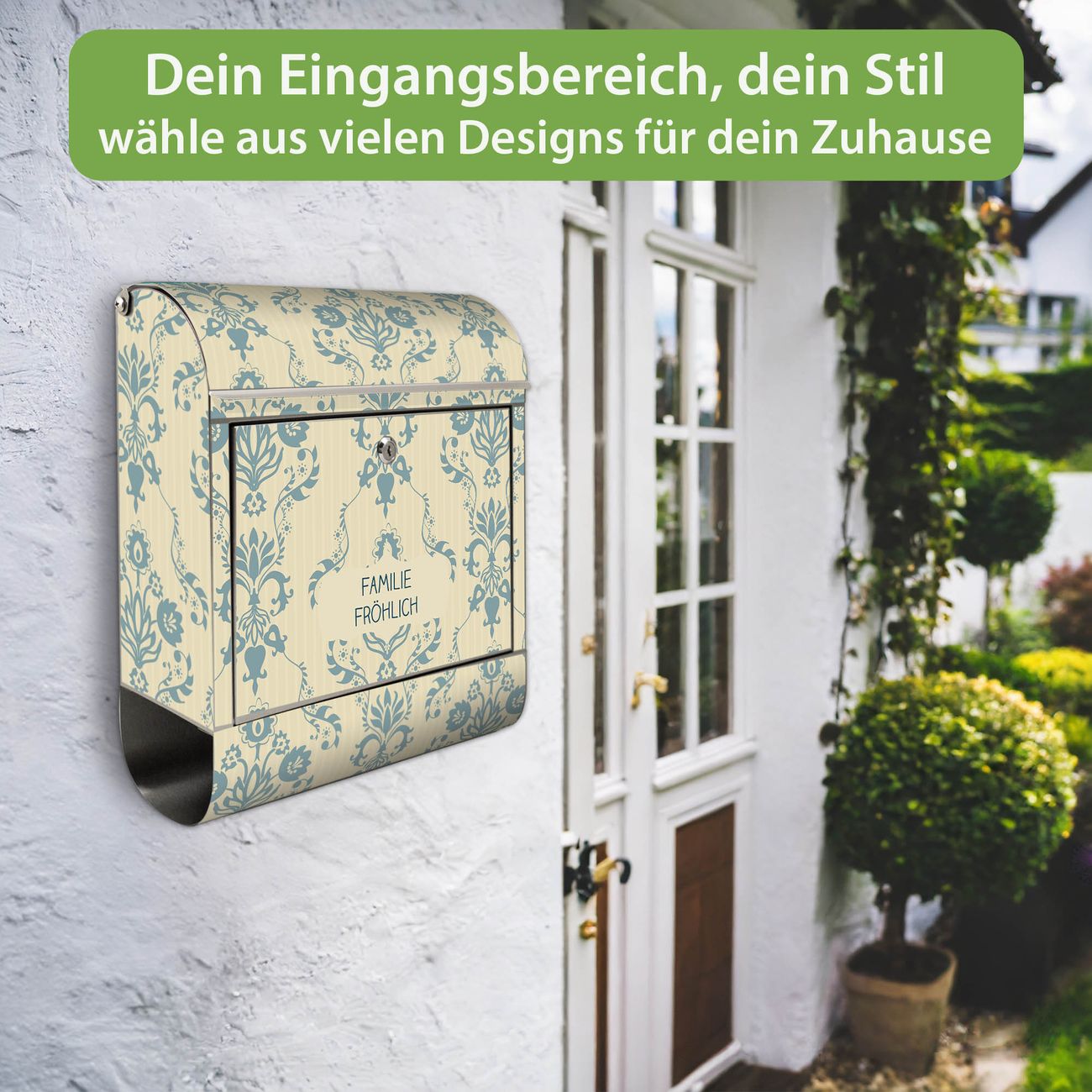 Der Vorschau-Text Familie Fröhlich wird durch Ihren persönlichen Wunschtext ersetzt. Die Schriftart und Farbe bleiben gleich wie in der Vorschau.