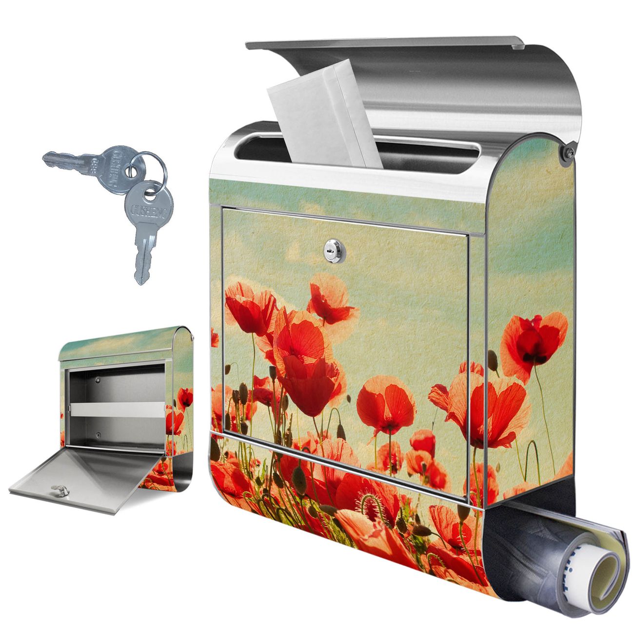 Wandbriefkasten Edelstahl Motiv Oktobermohn