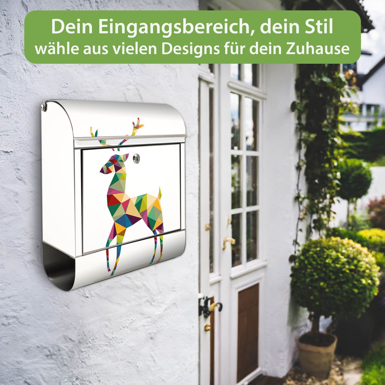Wandbriefkasten Edelstahl Motiv Origami Hirsch