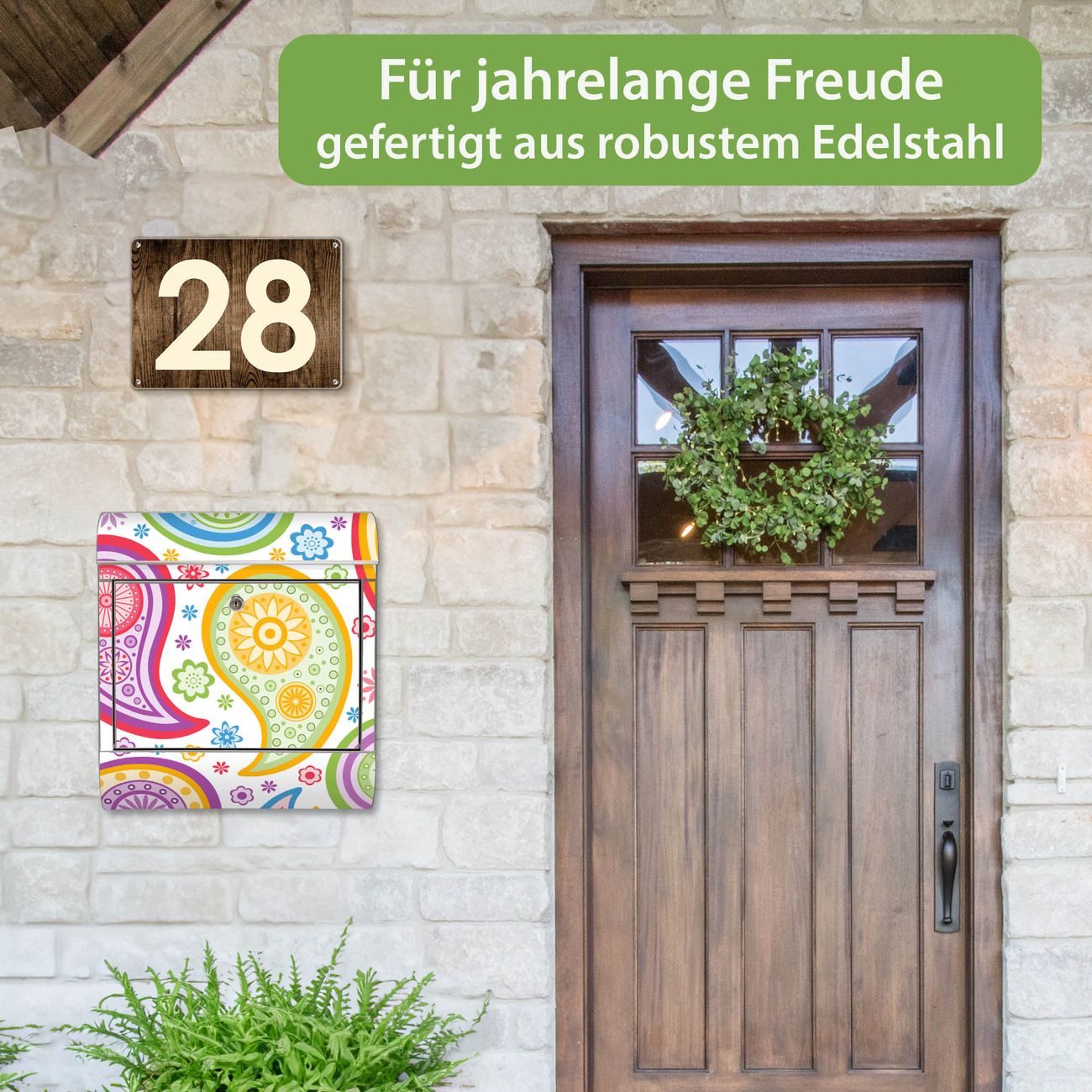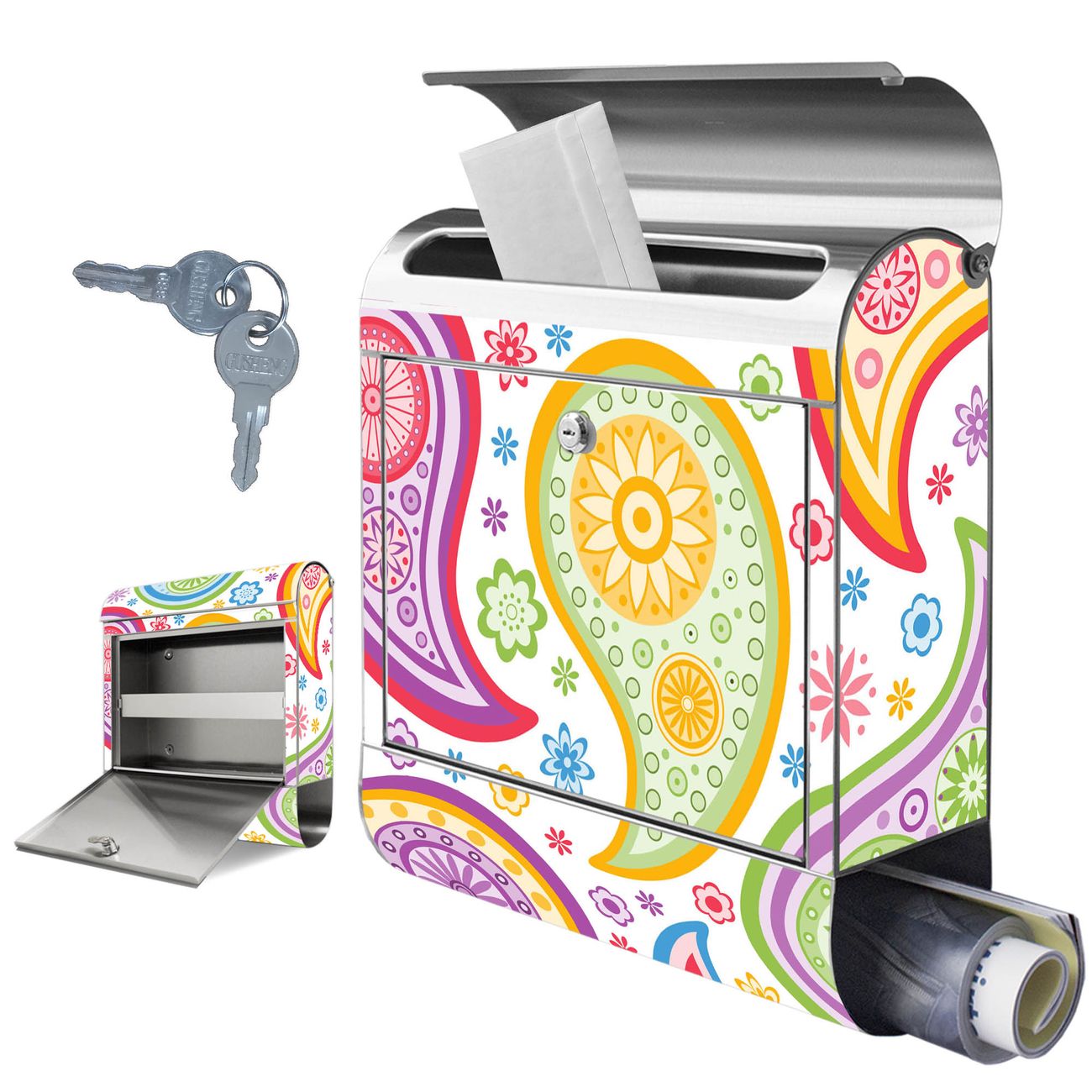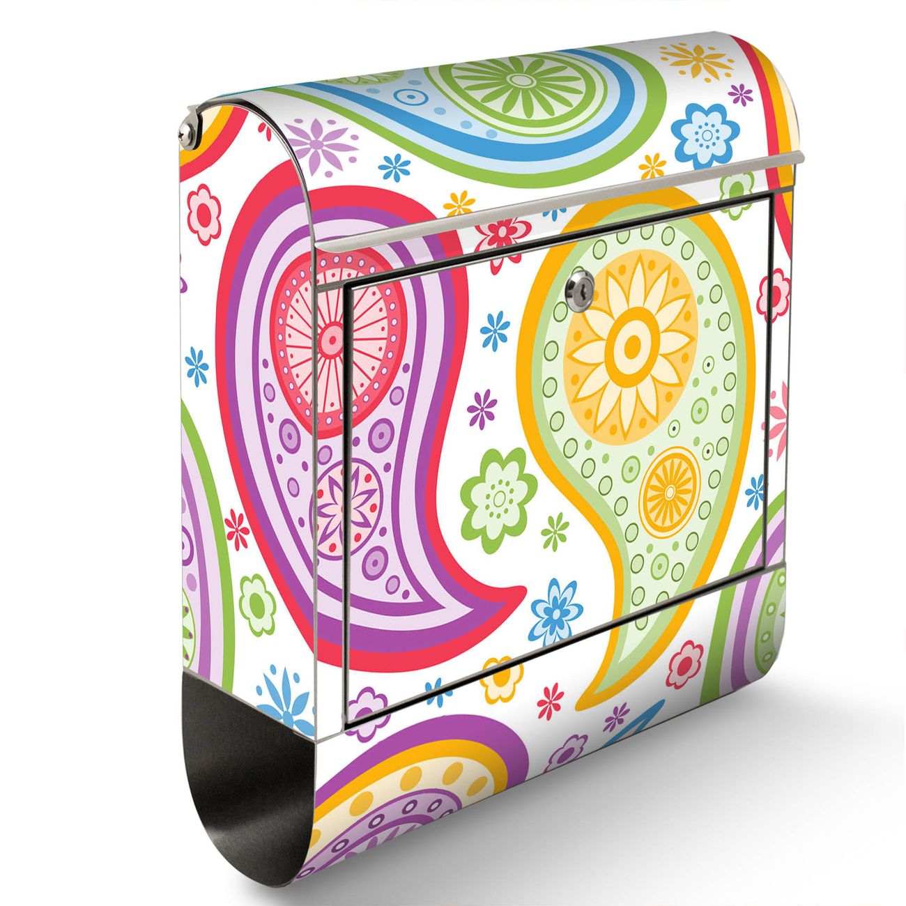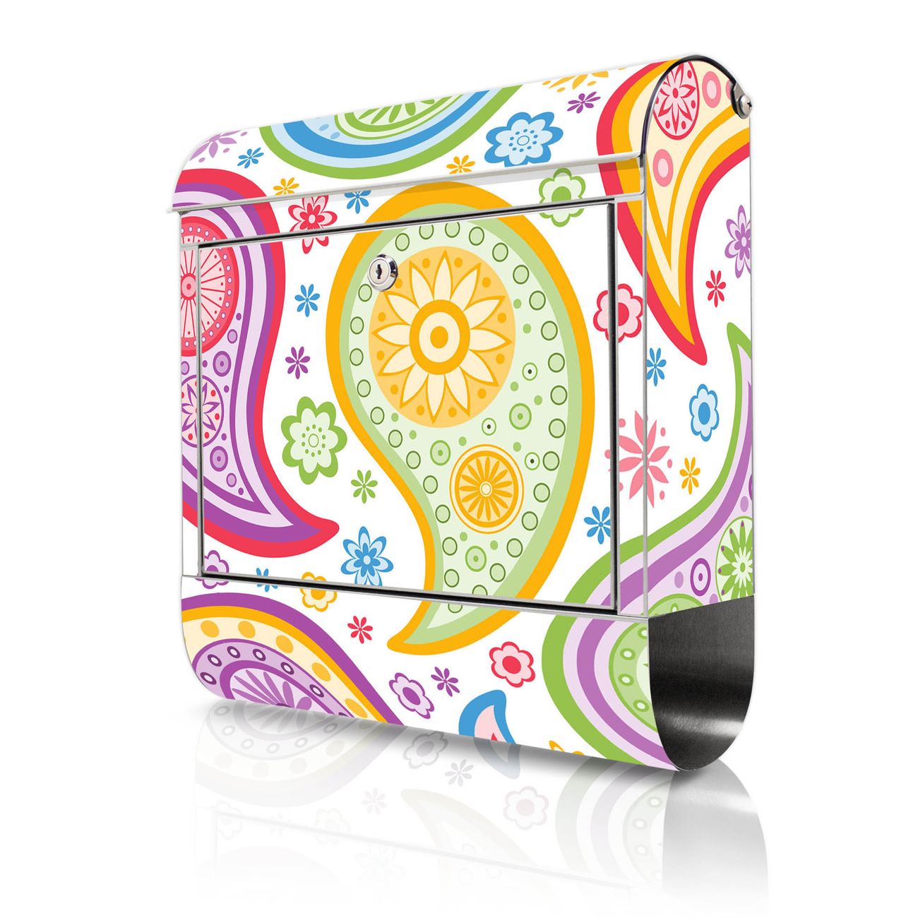Wandbriefkasten Edelstahl Motiv Paisley bunt
