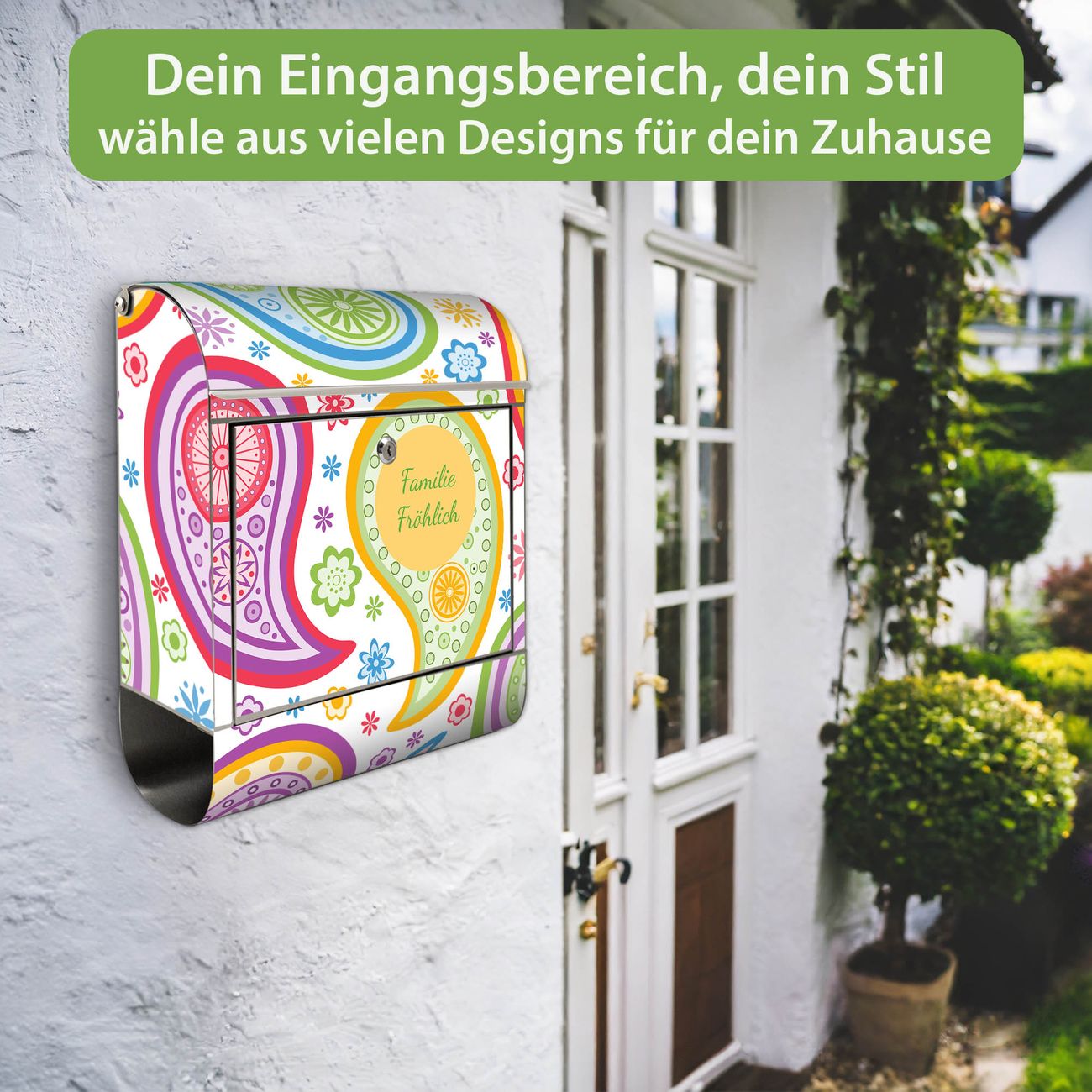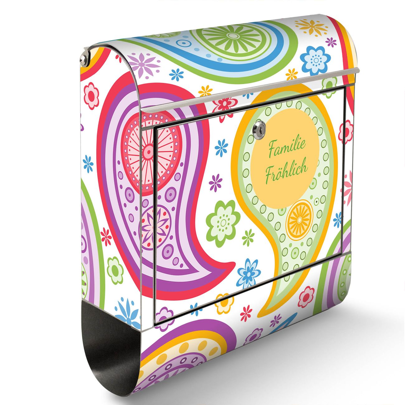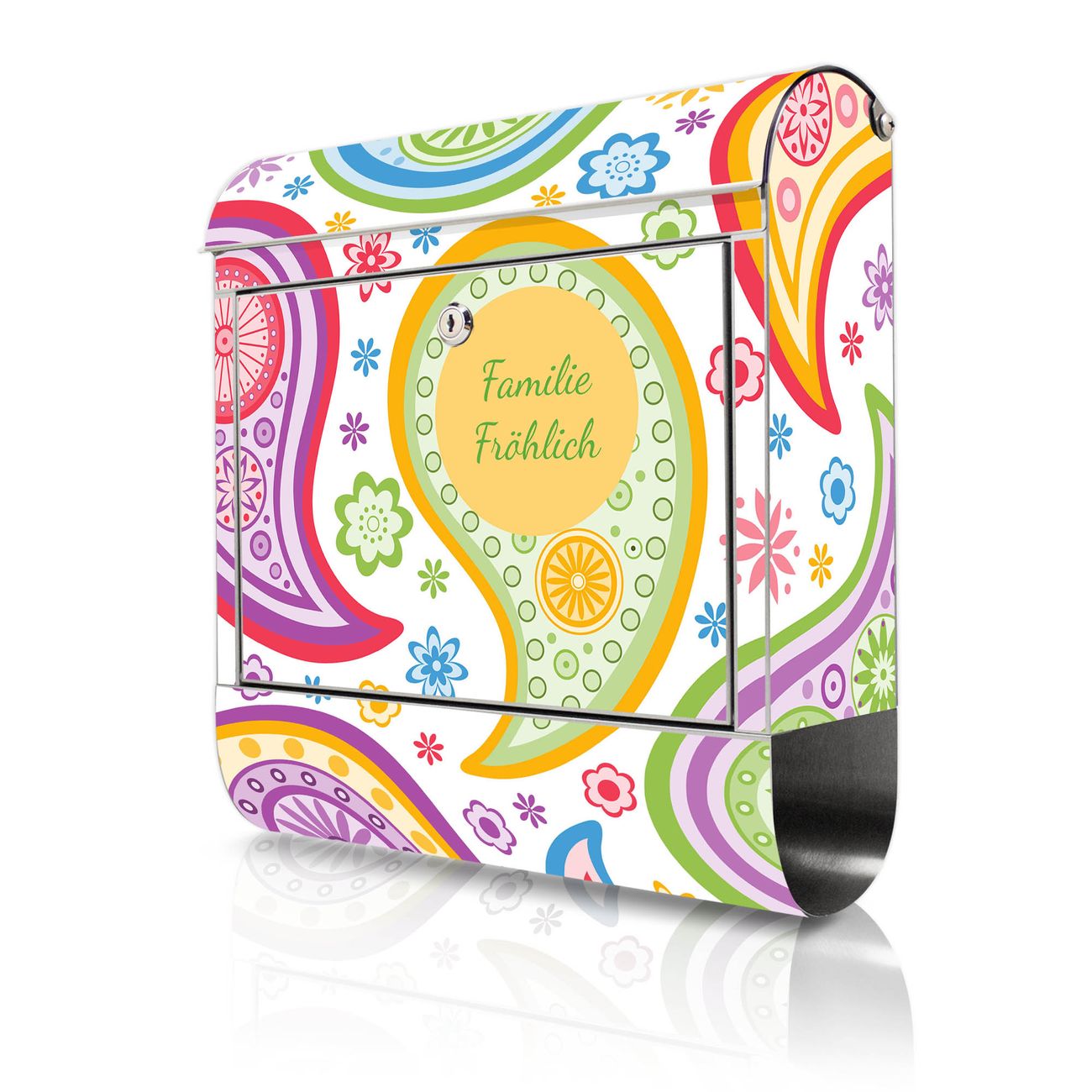 Wandbriefkasten Edelstahl Motiv Paisley bunt