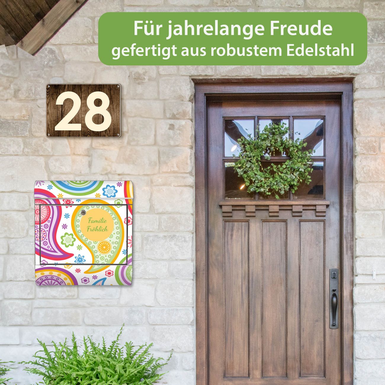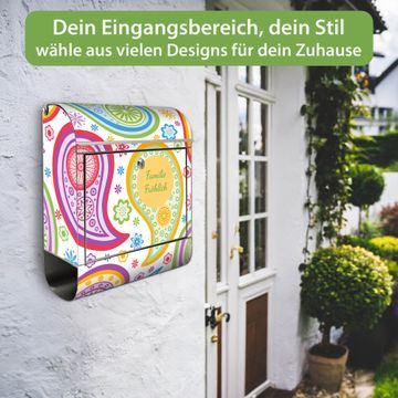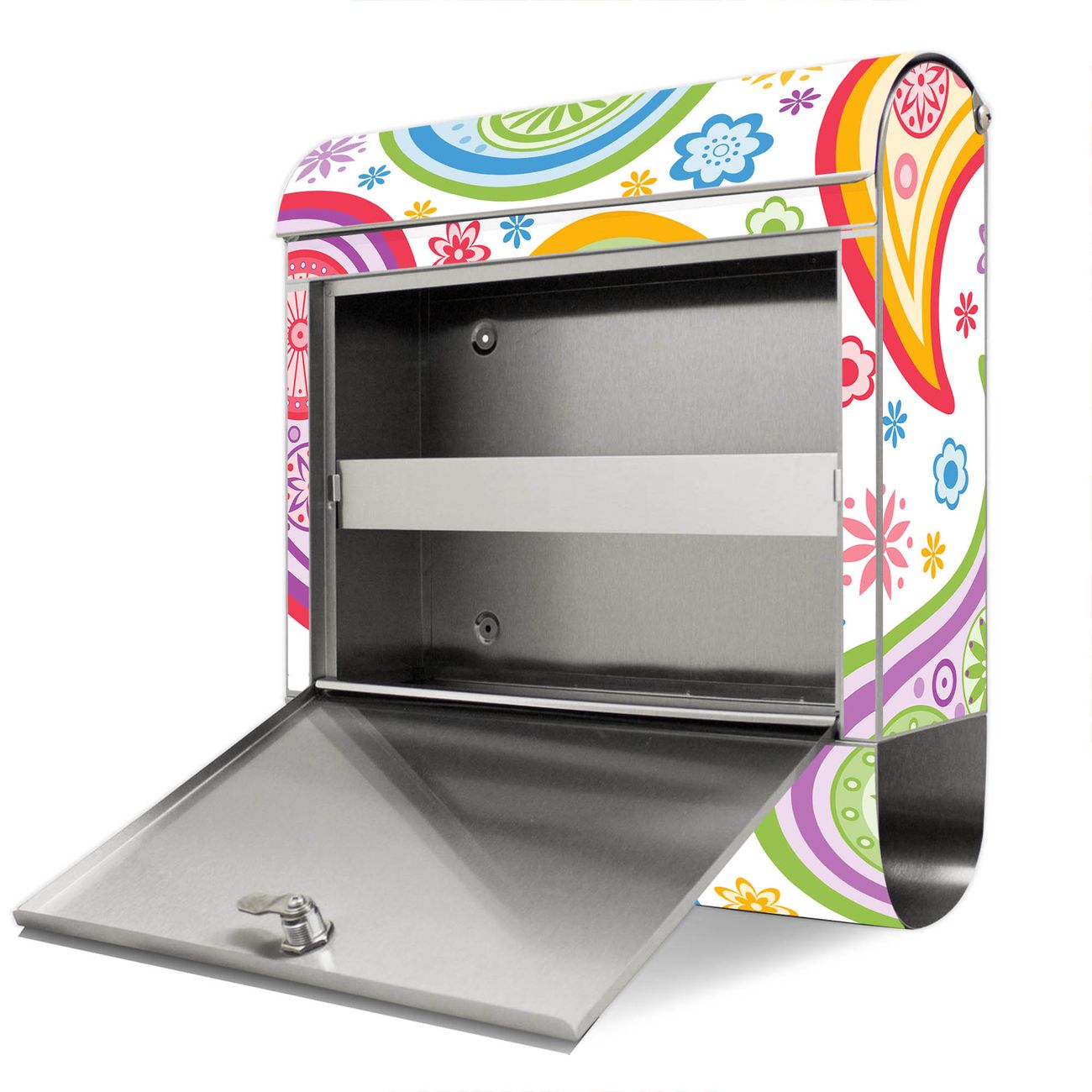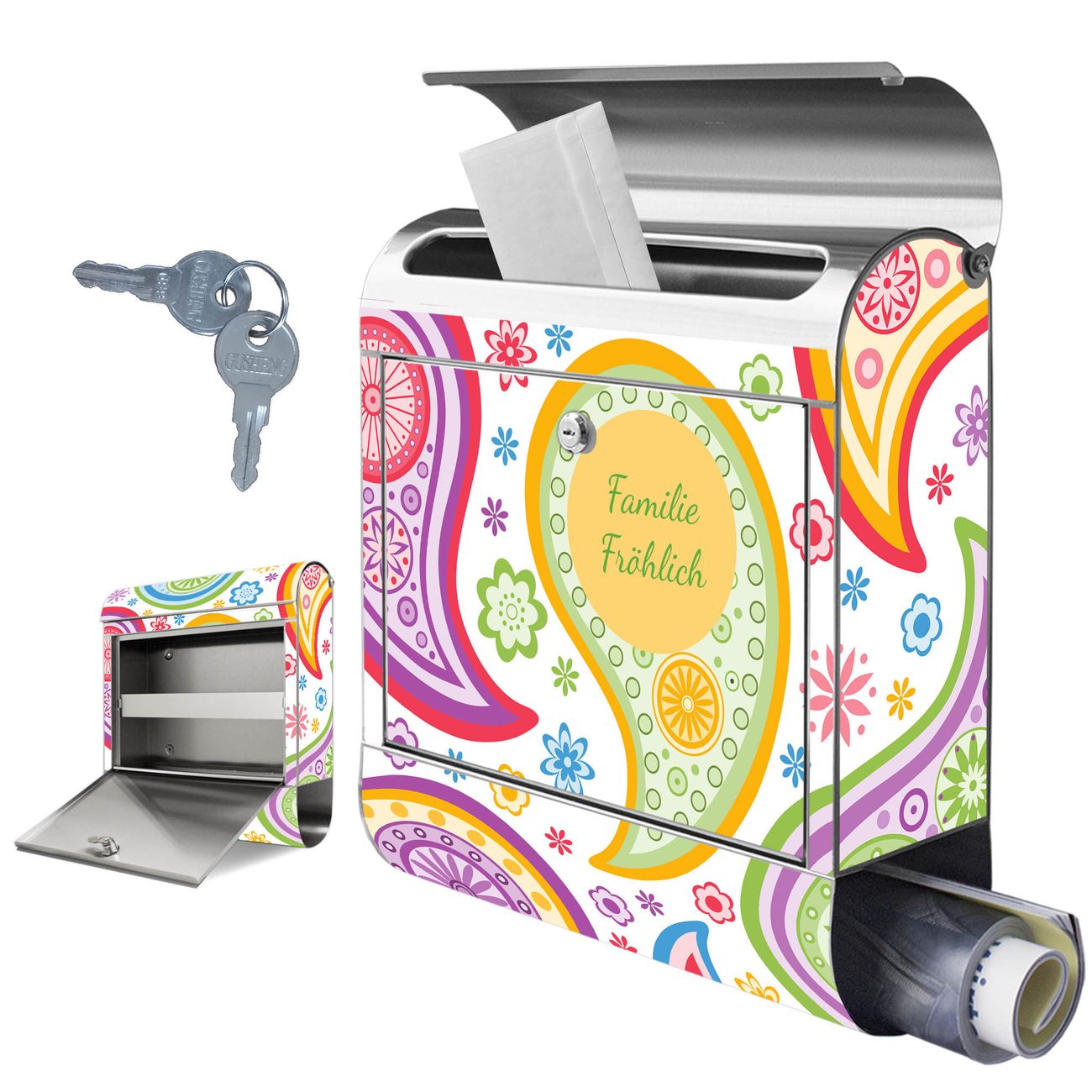 Wandbriefkasten Edelstahl Motiv Paisley bunt