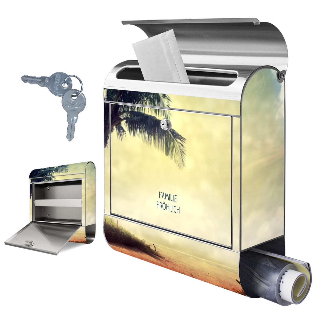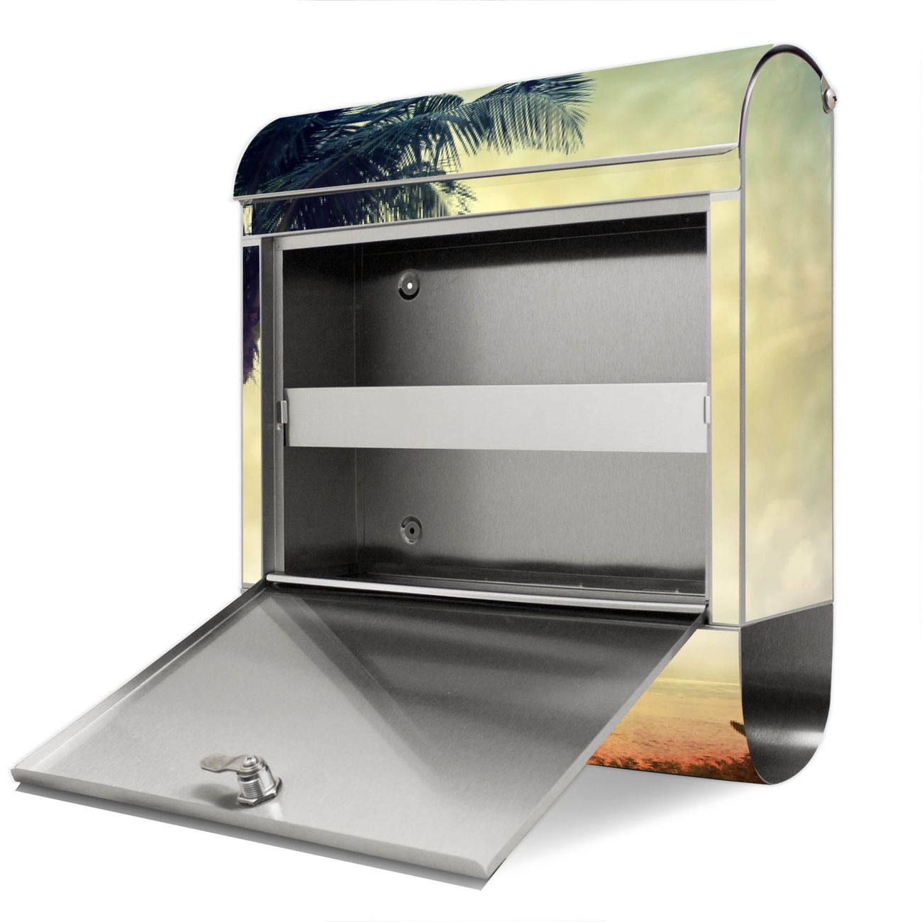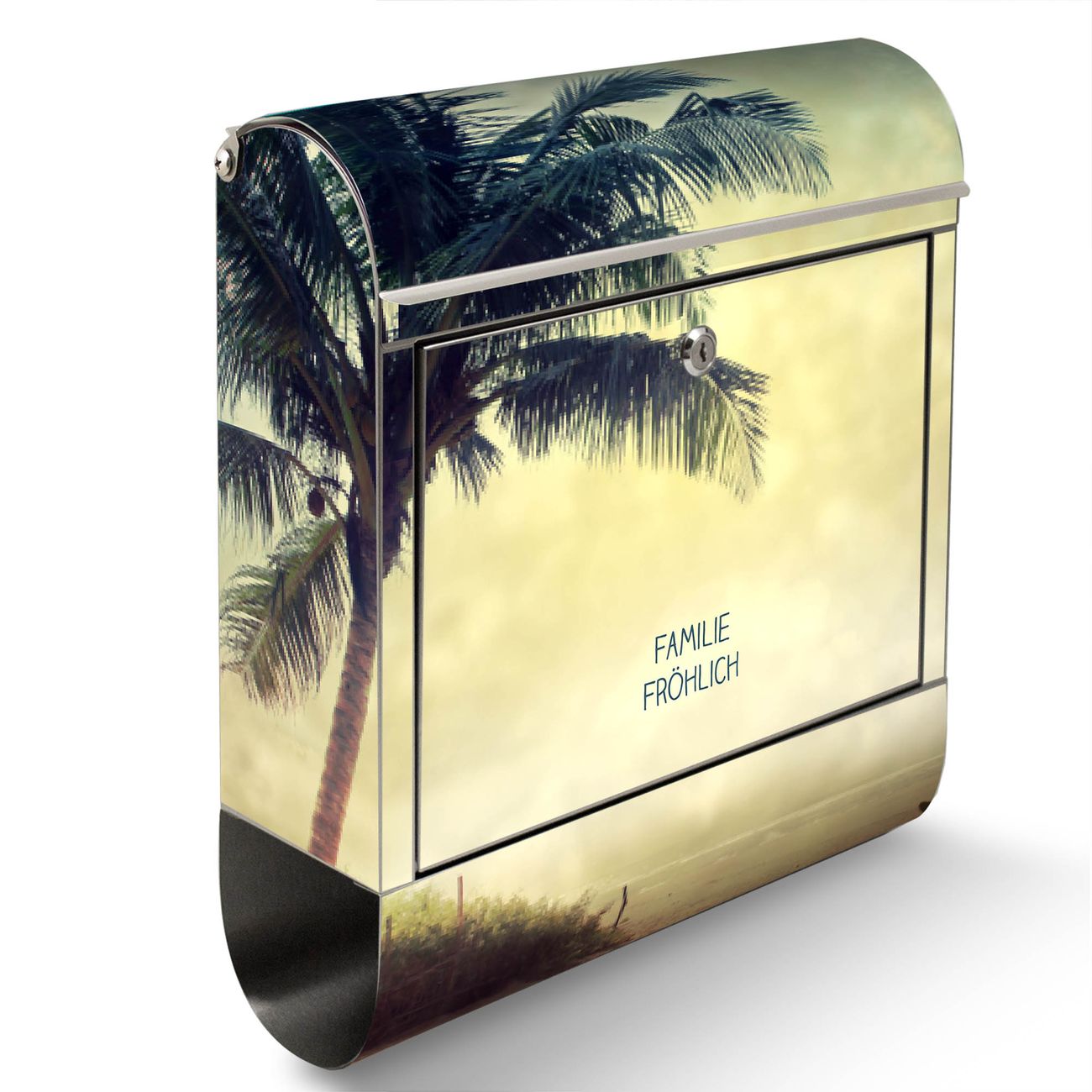 Wandbriefkasten Edelstahl Motiv Palme am Strand
