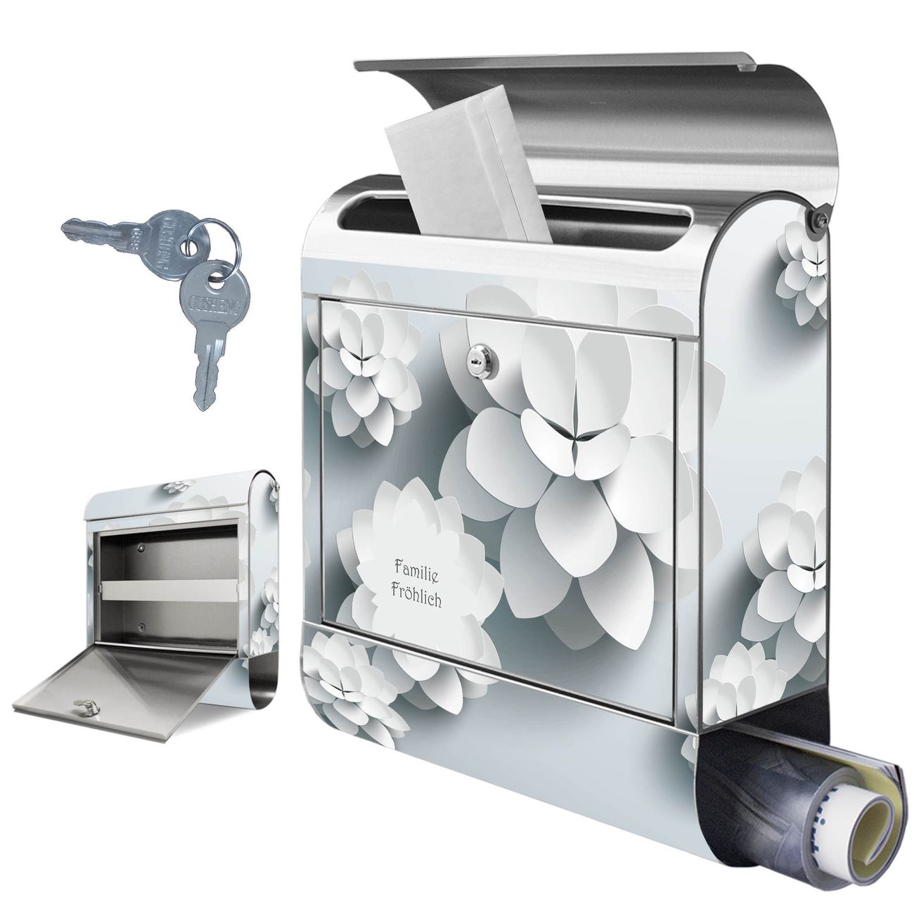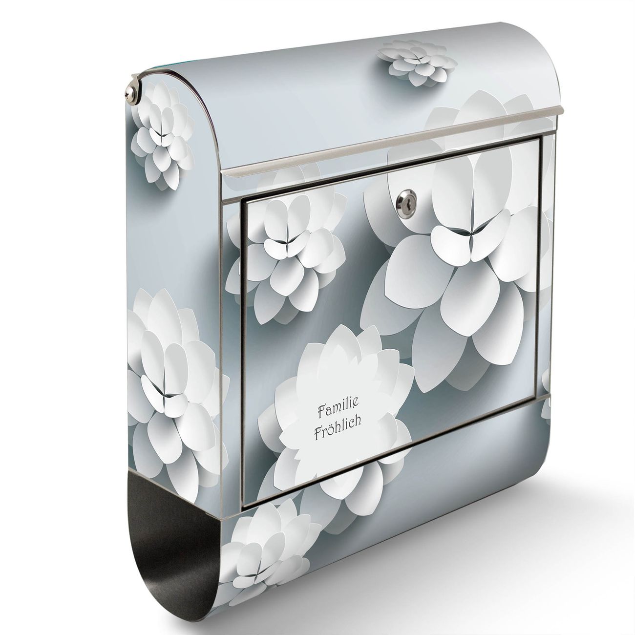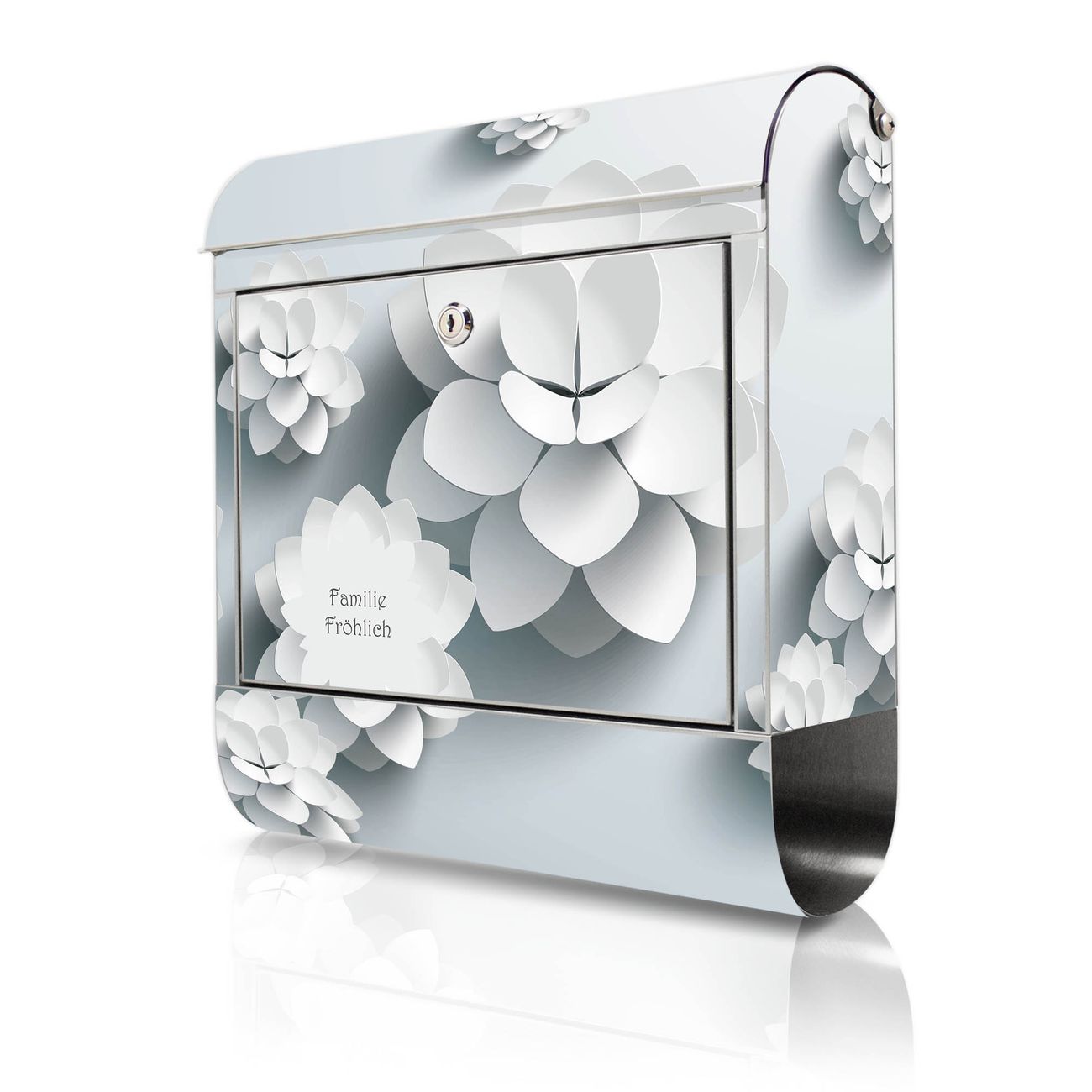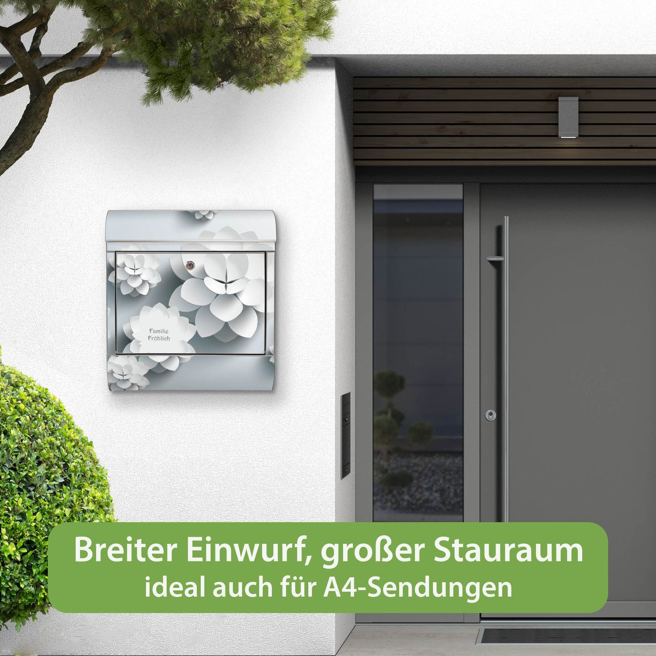 Wandbriefkasten Edelstahl Motiv Papier Lotus