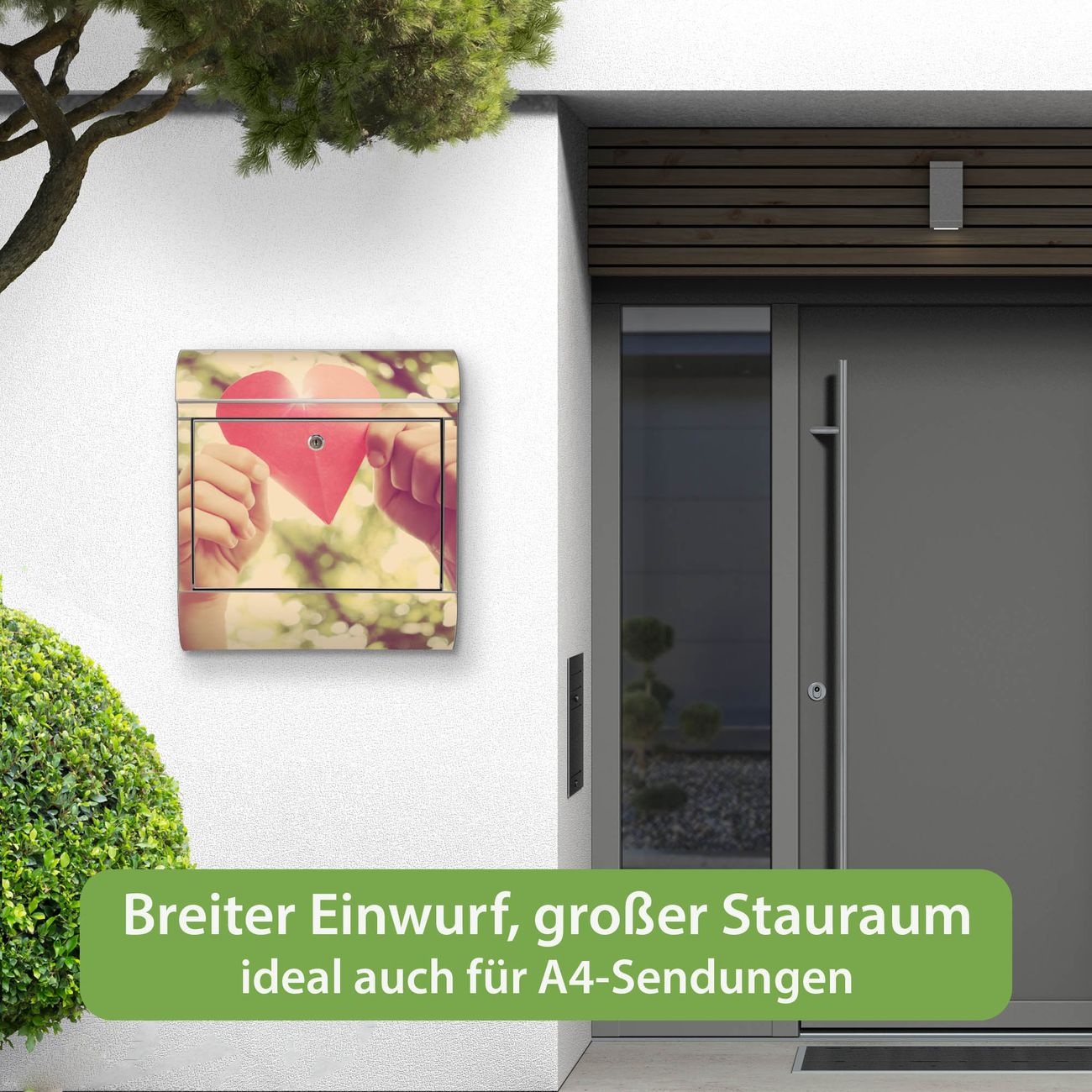 Wandbriefkasten Edelstahl Motiv Papierherz