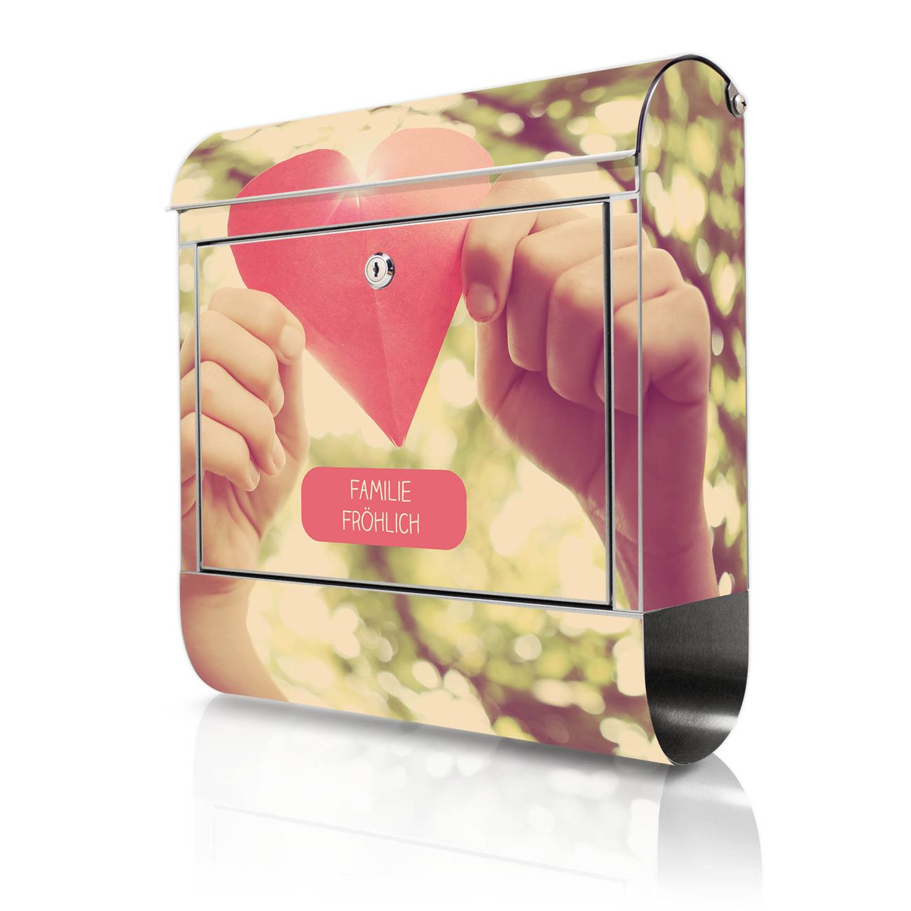 Wandbriefkasten Edelstahl Motiv Papierherz