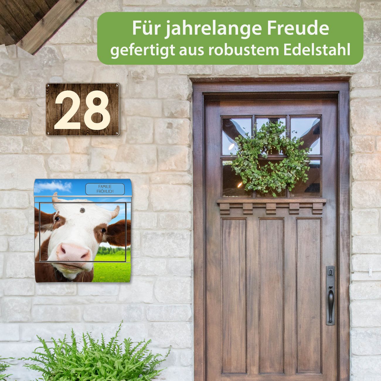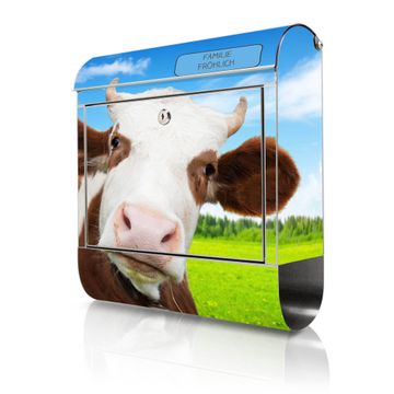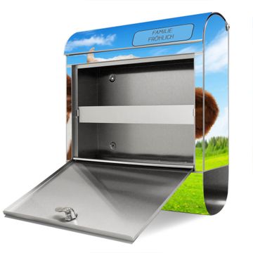 FUNKTION: Der banjado Edelstahl Briefkasten mit Motiv Motiv Pardon bietet Ihnen mit seinem Fassungsvermögen genügend Platz auch für große A4 Sendungen. Das integrierte Zeitungsfach eignet sich hervorragend um unkompliziert die Tageszeitung zu fassen. Auf Wunsch können Sie bei uns den passenden Ständer kaufen und so aus dem Wandbriefkasten einen Standbriefkasten machen. DESIGN: Der Motivbriefkasten hat ein sehr ansprechendes und ausgefallenes Design, damit entlocken Sie Ihren Nachbarn und dem Postboten ein Lächeln. Heben Sie Sich ab von der tristen grauen Masse ohne auf Funktionalität zu verzichten. DETAILS: Der Design Briefkasten mit Motiv Motiv Pardon besteht aus hochwertigem 18/0 Edelstahl. Das Motiv besteht aus einer wetter- und UV-resistenten Folie, die mit einem Schutzlaminat überzogen ist. Der Briefkasten wird mit Montagematerial und zwei Schlüsseln geliefert. NUTZEN: Sie können diesen Briefkasten sowohl als Wandbriefkasten montieren oder einen passenden Ständer auswählen und als Standbriefkasten einbetonieren. Die Größe bietet genügend Platz für Sendungen aller Art, das hochwertige Edelstahl ist rostfrei und die Motivfolie absolut wetterfest. SCHUTZ: Um Ihre Post optimal vor Witterungseinflüssen wie Starkregen zu schützen, empfehlen wir, den Briefkasten geschützt anzubringen. BANJADO: Ihr Briefkasten wird in Sachsen in einer kleinen Manufaktur von Hand veredelt. Die Motivfolie ist lösungsmittelfrei und schutzlaminiert, dies sorgt für einen langen Halt. Wir legen großen Wert auf die Verbindung von Funktionalität und Design. Sie erhalten Handarbeit aus Sachsen.