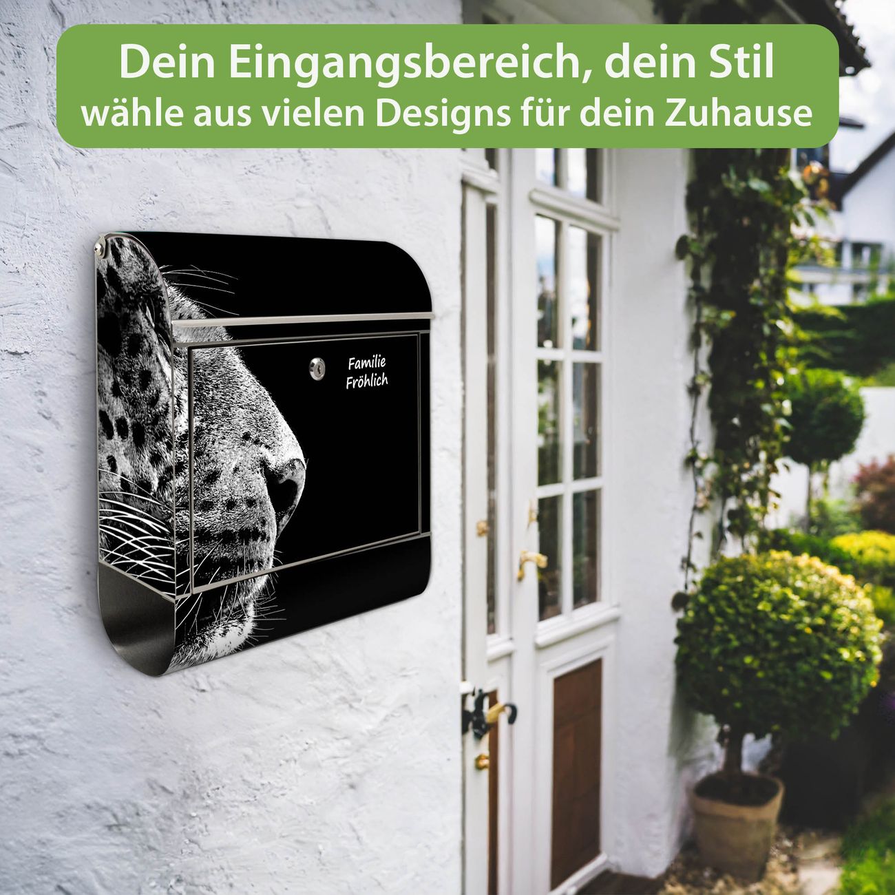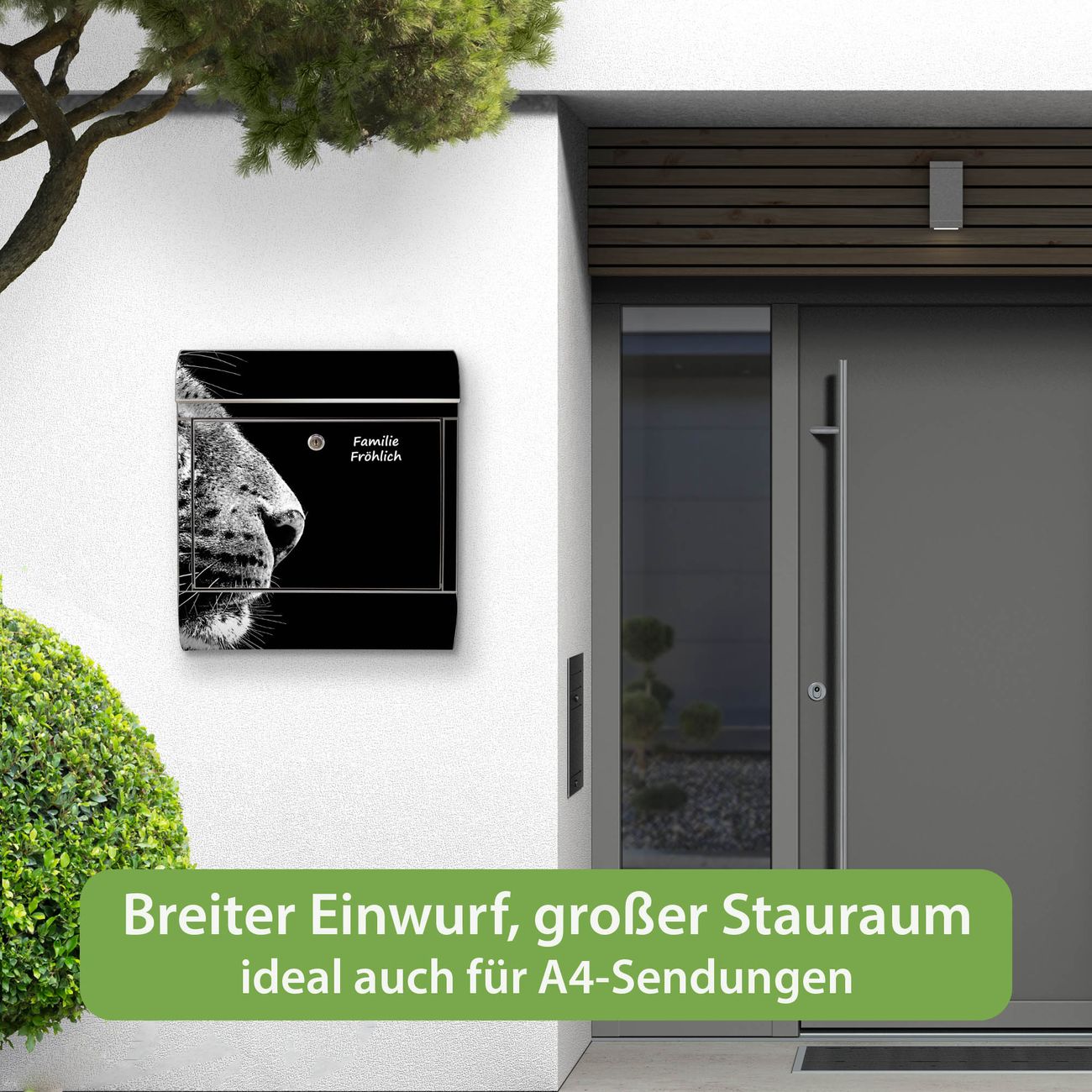 FUNKTION: Der banjado Edelstahl Briefkasten mit Motiv Motiv Pauline bietet Ihnen mit seinem Fassungsvermögen genügend Platz auch für große A4 Sendungen. Das integrierte Zeitungsfach eignet sich hervorragend um unkompliziert die Tageszeitung zu fassen. Auf Wunsch können Sie bei uns den passenden Ständer kaufen und so aus dem Wandbriefkasten einen Standbriefkasten machen. DESIGN: Der Motivbriefkasten hat ein sehr ansprechendes und ausgefallenes Design, damit entlocken Sie Ihren Nachbarn und dem Postboten ein Lächeln. Heben Sie Sich ab von der tristen grauen Masse ohne auf Funktionalität zu verzichten. DETAILS: Der Design Briefkasten mit Motiv Motiv Pauline besteht aus hochwertigem 18/0 Edelstahl. Das Motiv besteht aus einer wetter- und UV-resistenten Folie, die mit einem Schutzlaminat überzogen ist. Der Briefkasten wird mit Montagematerial und zwei Schlüsseln geliefert. NUTZEN: Sie können diesen Briefkasten sowohl als Wandbriefkasten montieren oder einen passenden Ständer auswählen und als Standbriefkasten einbetonieren. Die Größe bietet genügend Platz für Sendungen aller Art, das hochwertige Edelstahl ist rostfrei und die Motivfolie absolut wetterfest. SCHUTZ: Um Ihre Post optimal vor Witterungseinflüssen wie Starkregen zu schützen, empfehlen wir, den Briefkasten geschützt anzubringen. BANJADO: Ihr Briefkasten wird in Sachsen in einer kleinen Manufaktur von Hand veredelt. Die Motivfolie ist lösungsmittelfrei und schutzlaminiert, dies sorgt für einen langen Halt. Wir legen großen Wert auf die Verbindung von Funktionalität und Design. Sie erhalten Handarbeit aus Sachsen.