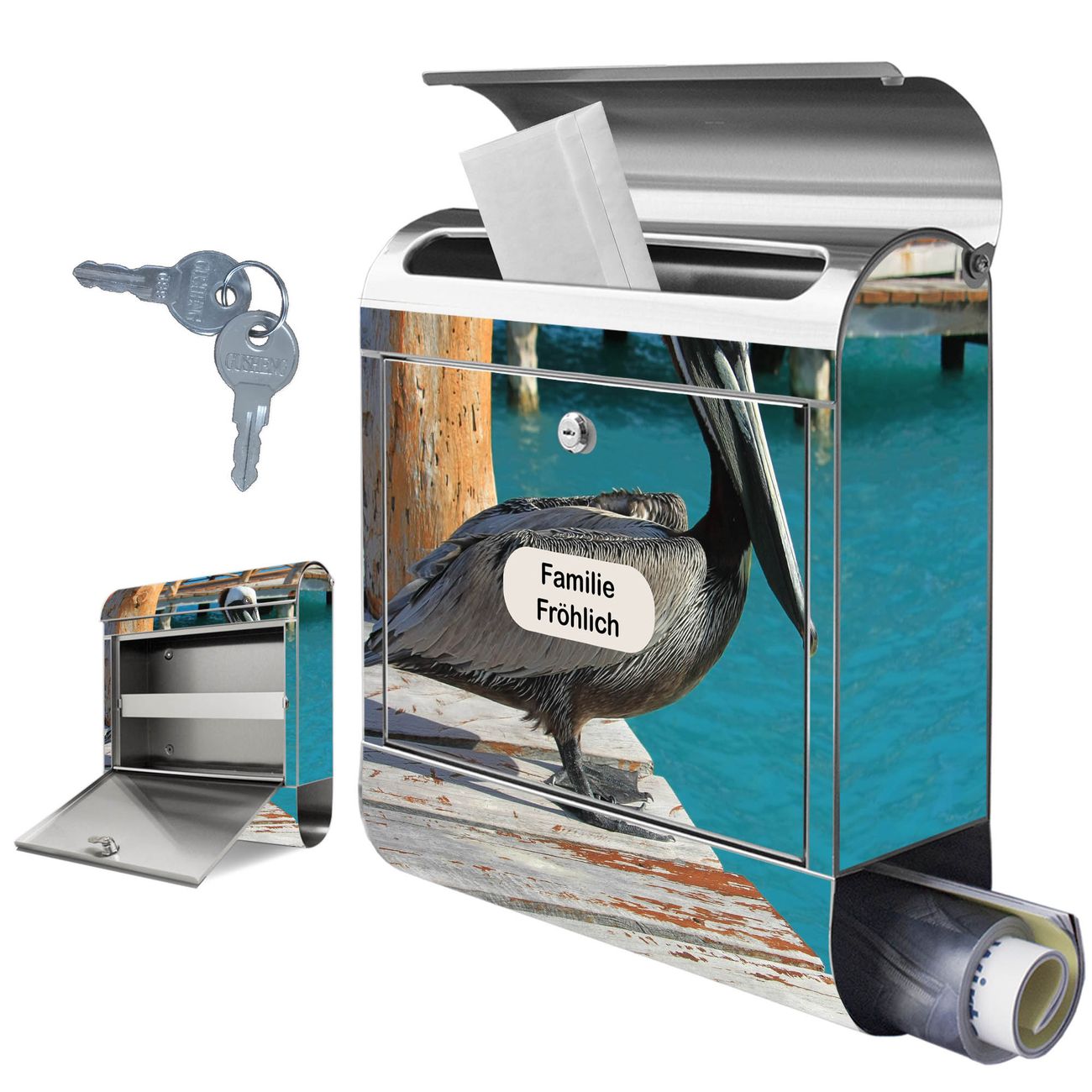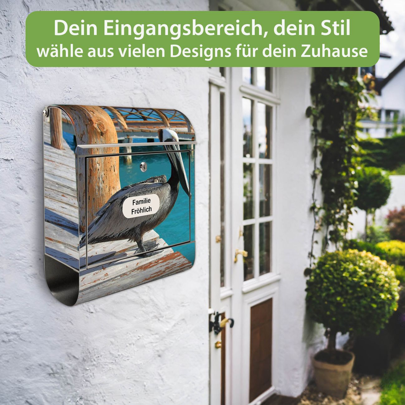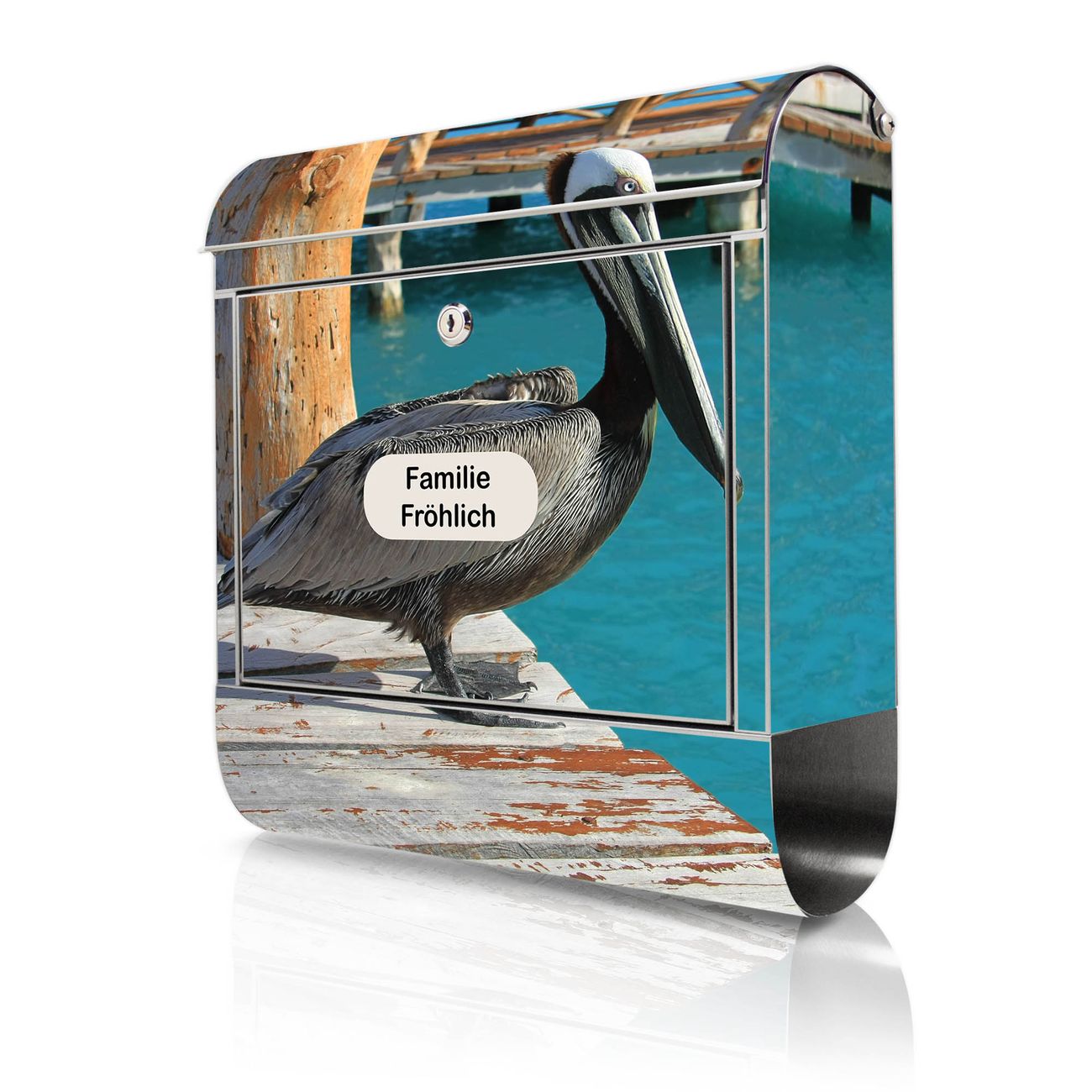 Wandbriefkasten Edelstahl Motiv Pelikan