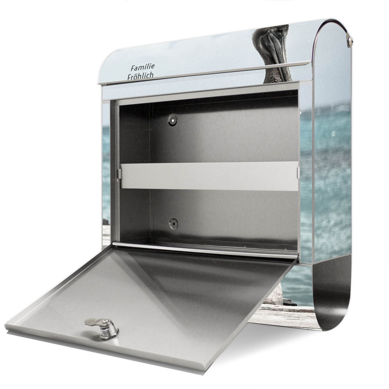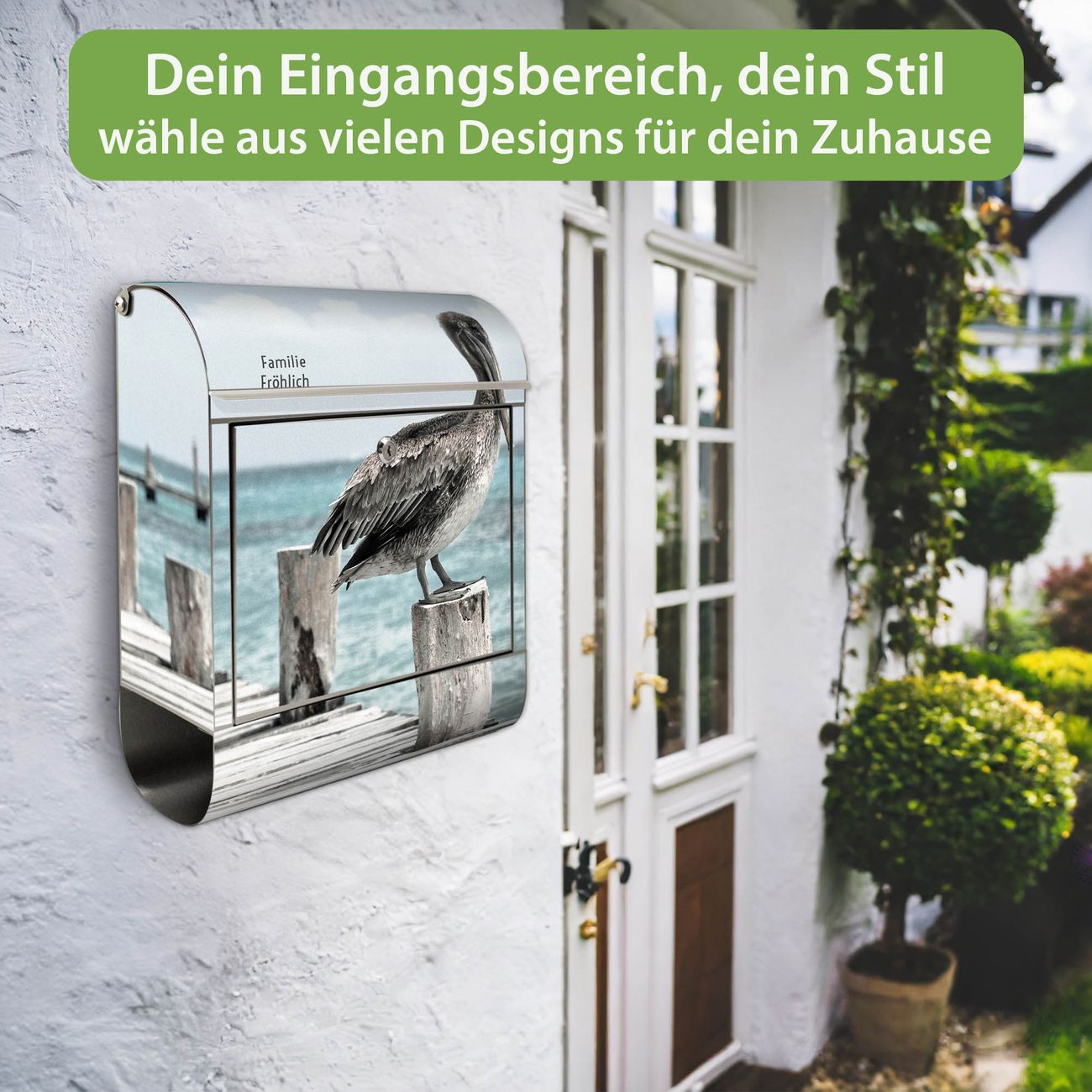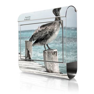 Wandbriefkasten Edelstahl Motiv Pelikane