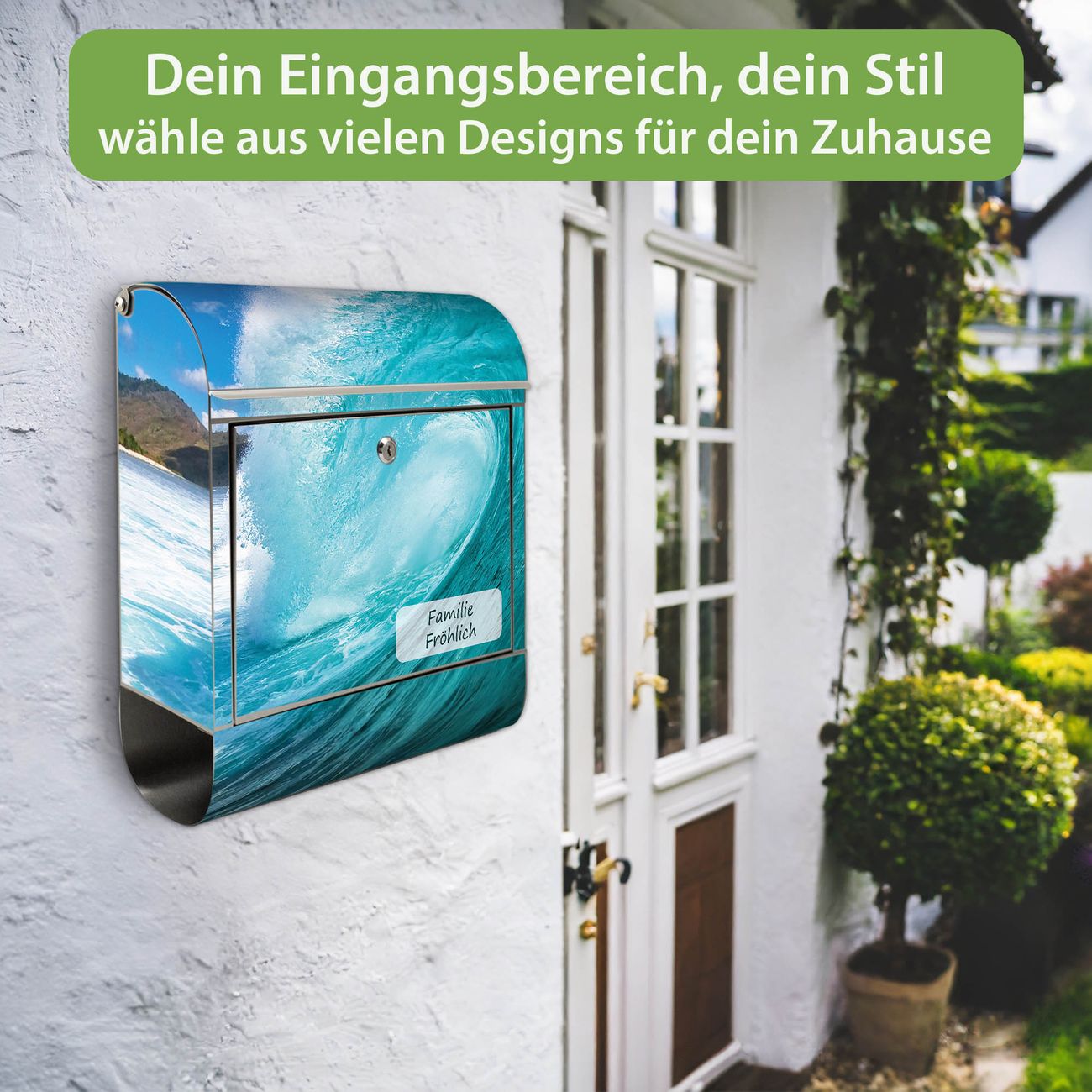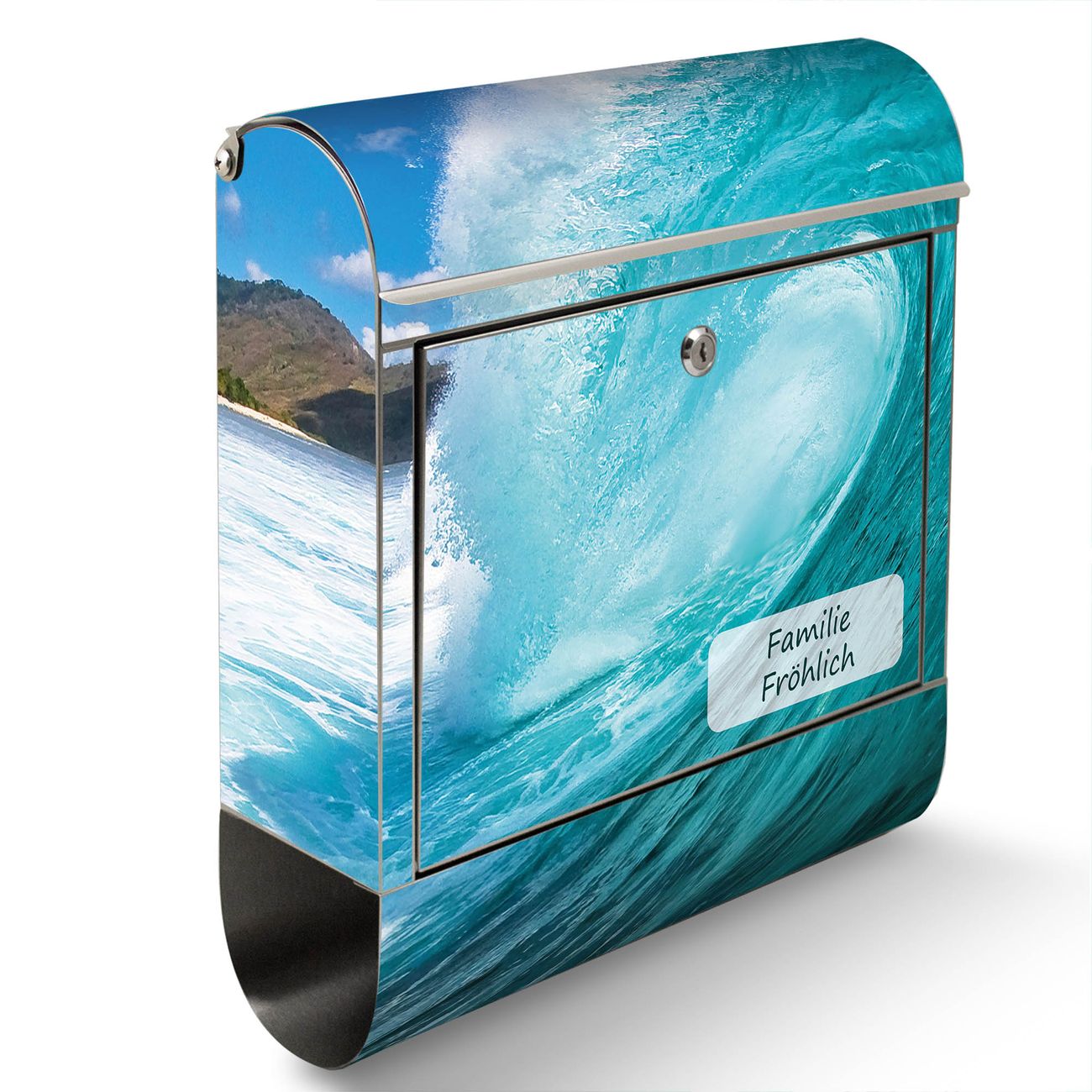 Wandbriefkasten Edelstahl Motiv Perfekte Welle