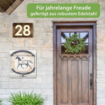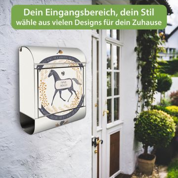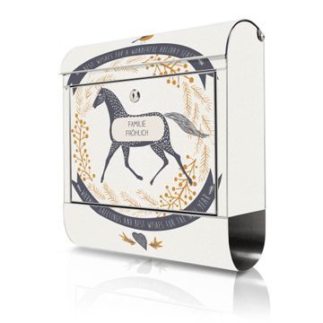 Wandbriefkasten Edelstahl Motiv Pferd und Vogel