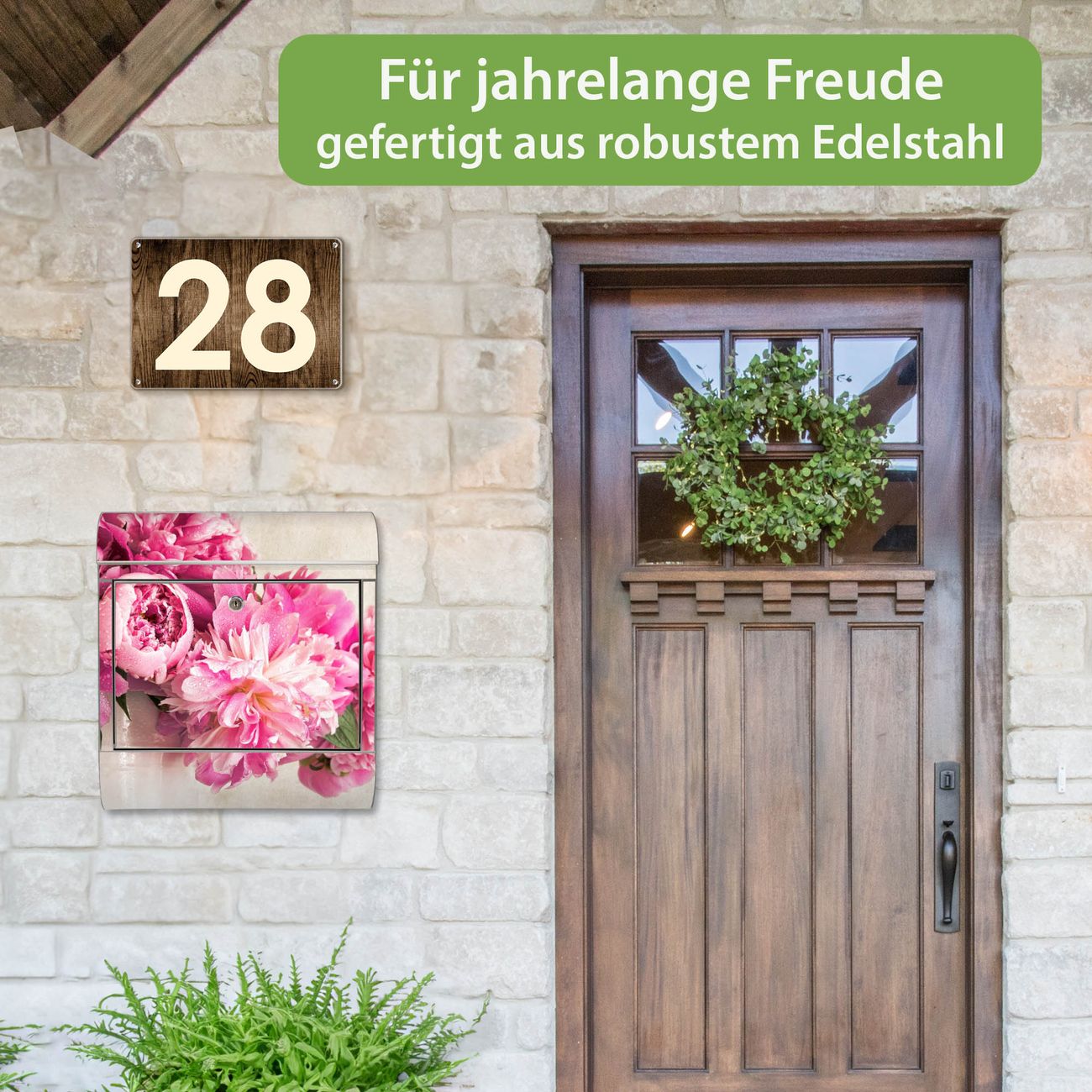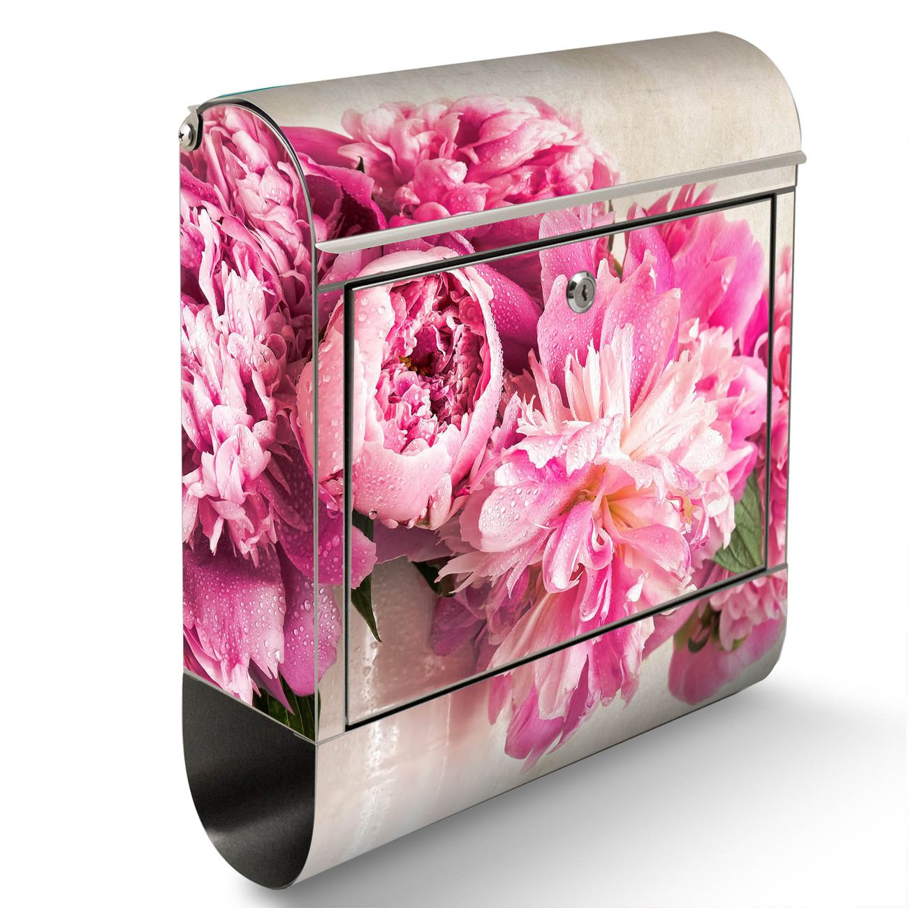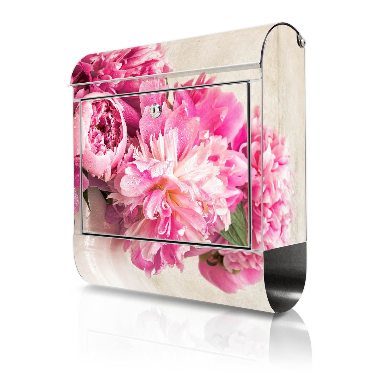 Wandbriefkasten Edelstahl Motiv Pfingstrose