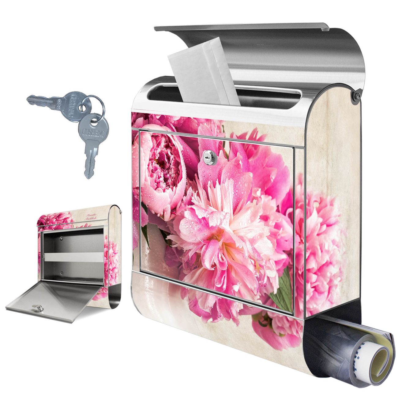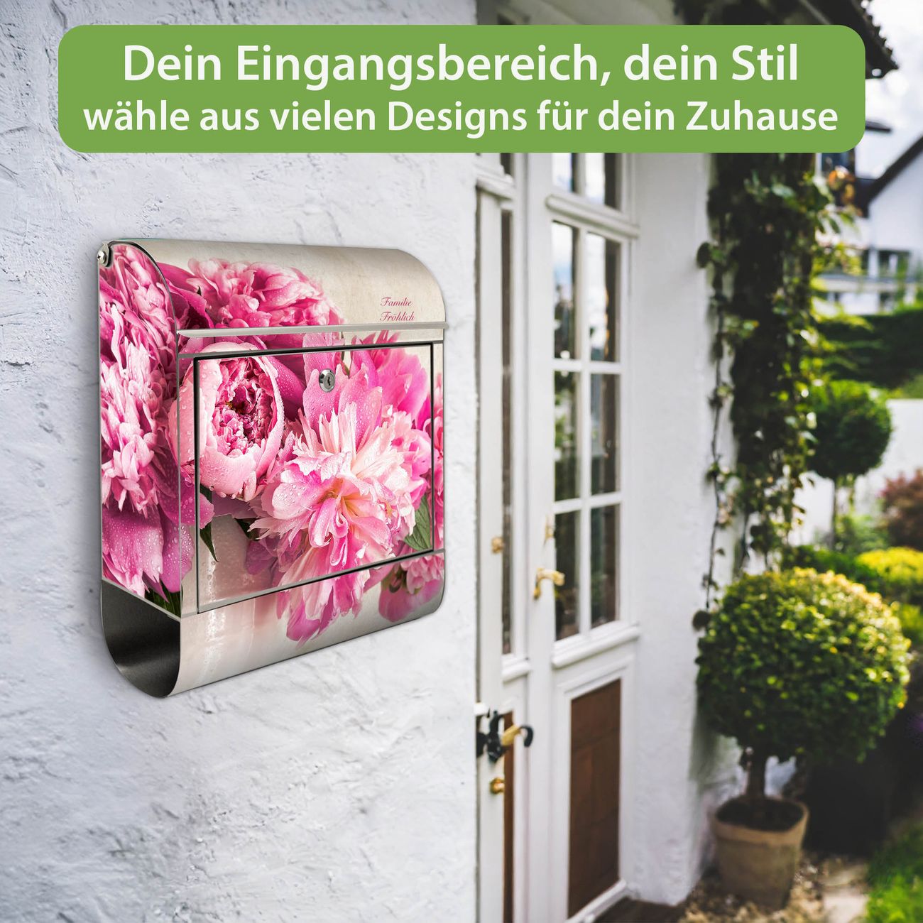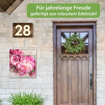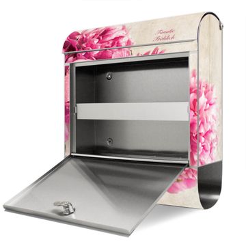Wandbriefkasten Edelstahl Motiv Pfingstrose