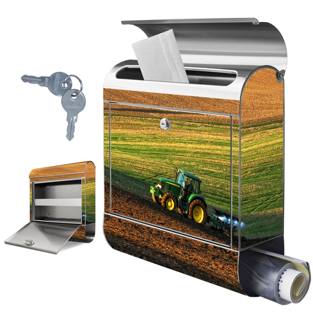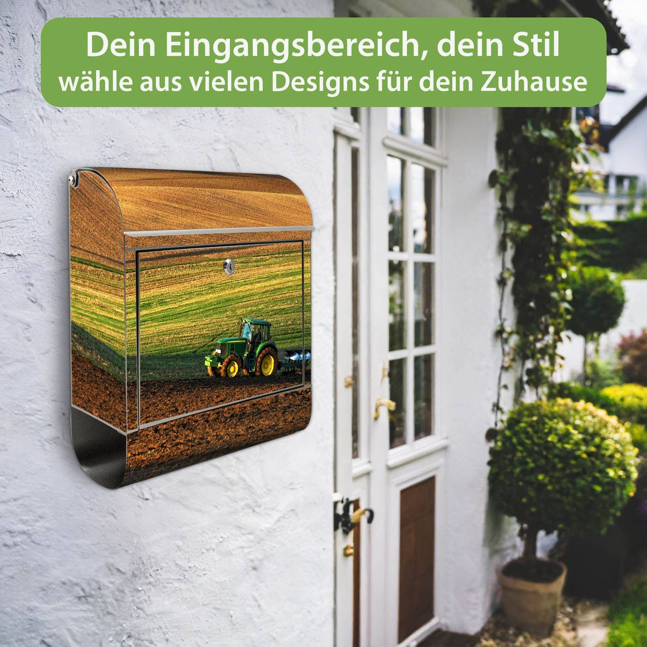 Wandbriefkasten Edelstahl Motiv Pflügen