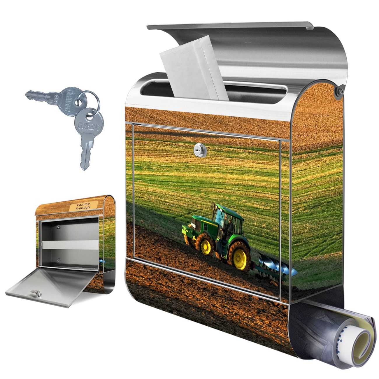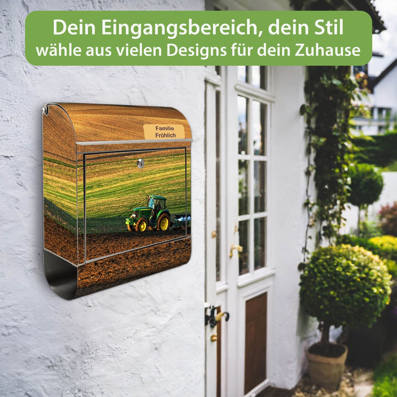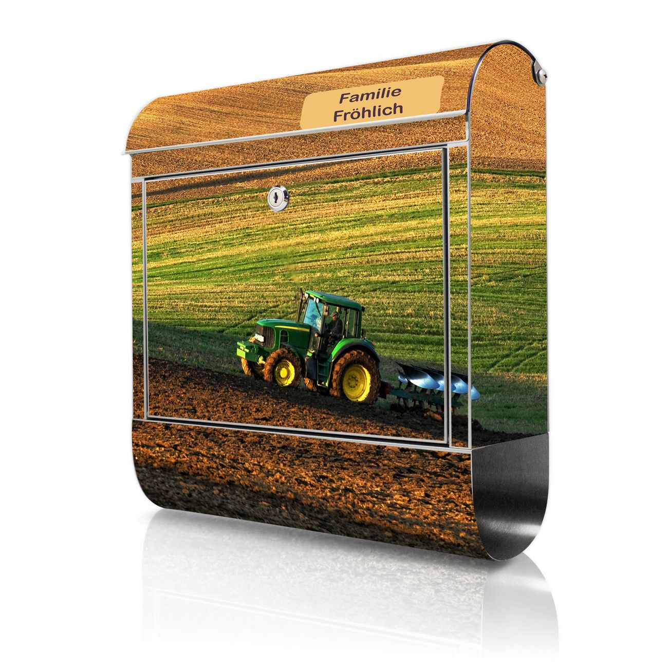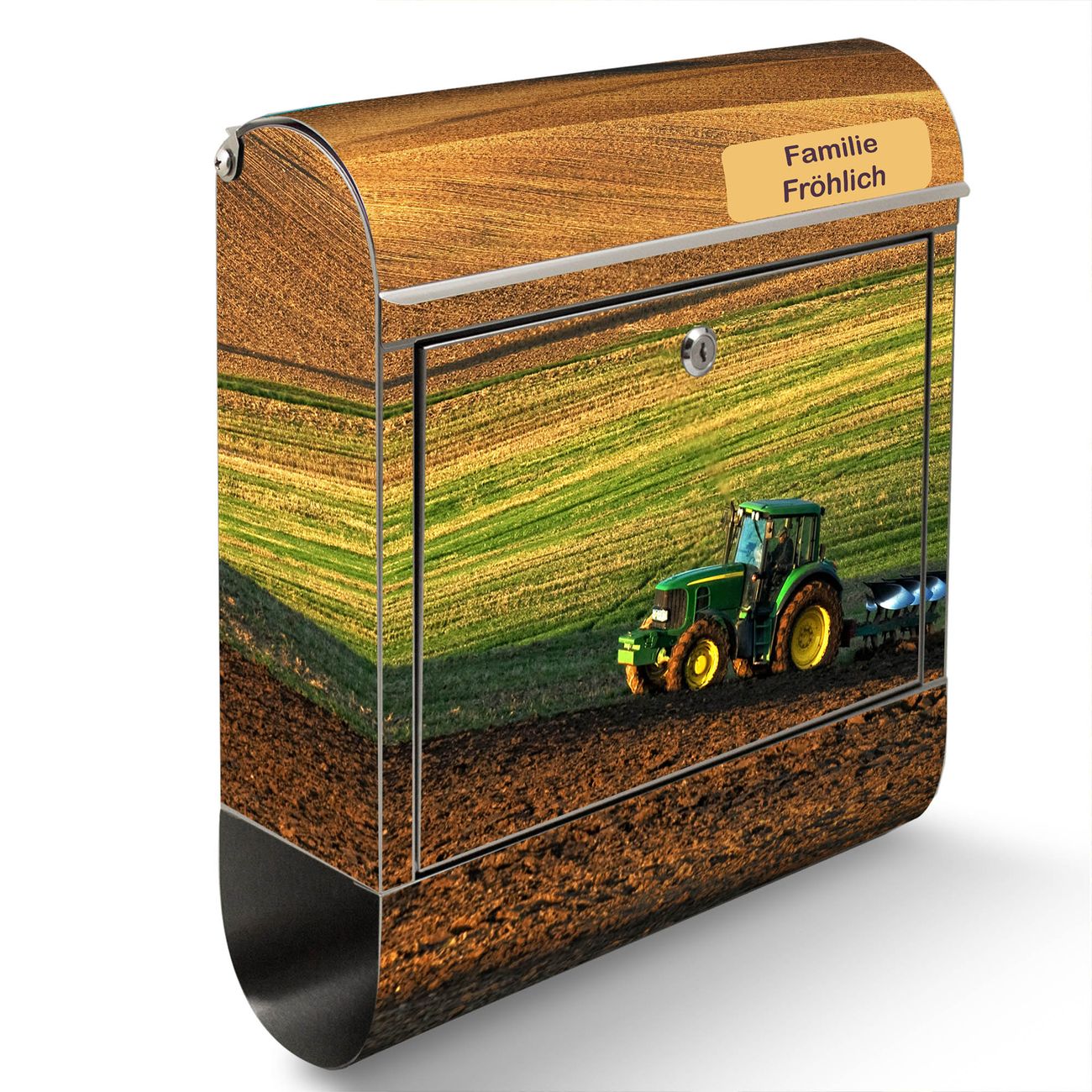 Wandbriefkasten Edelstahl Motiv Pflügen