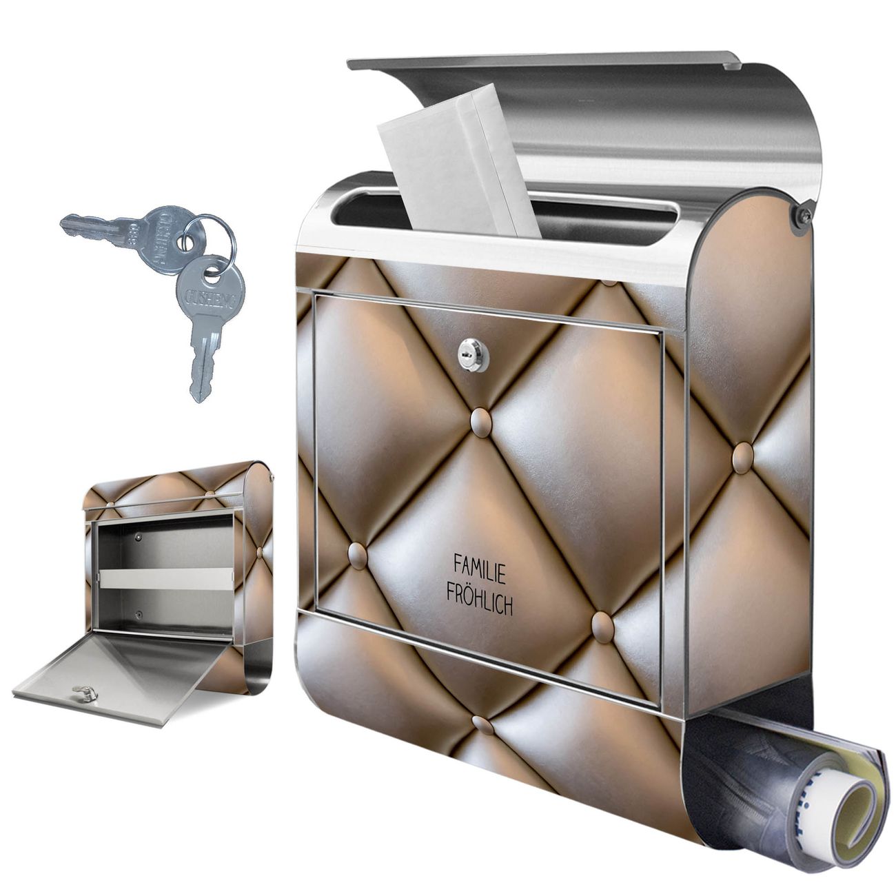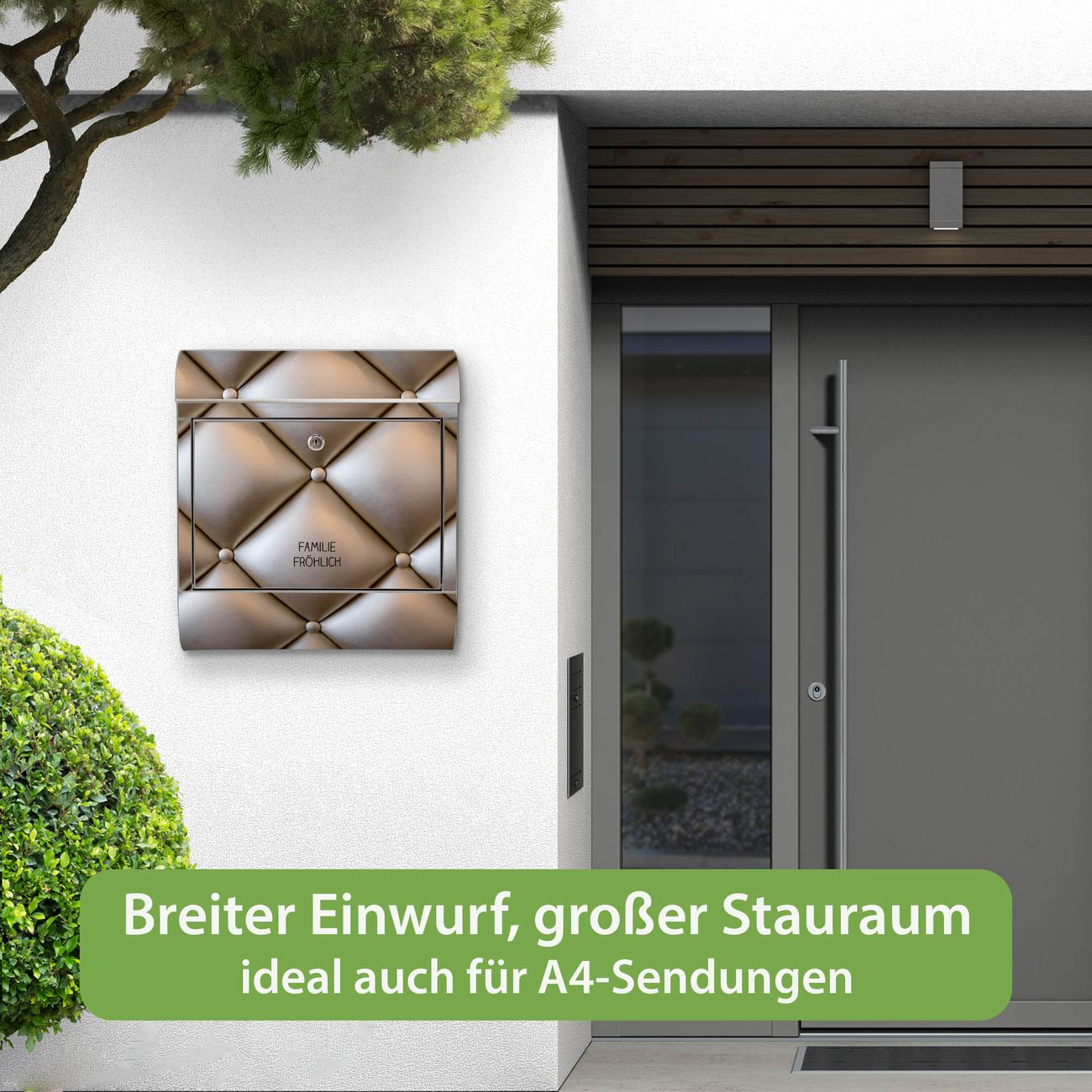 Wandbriefkasten Edelstahl Motiv Polster Bronze