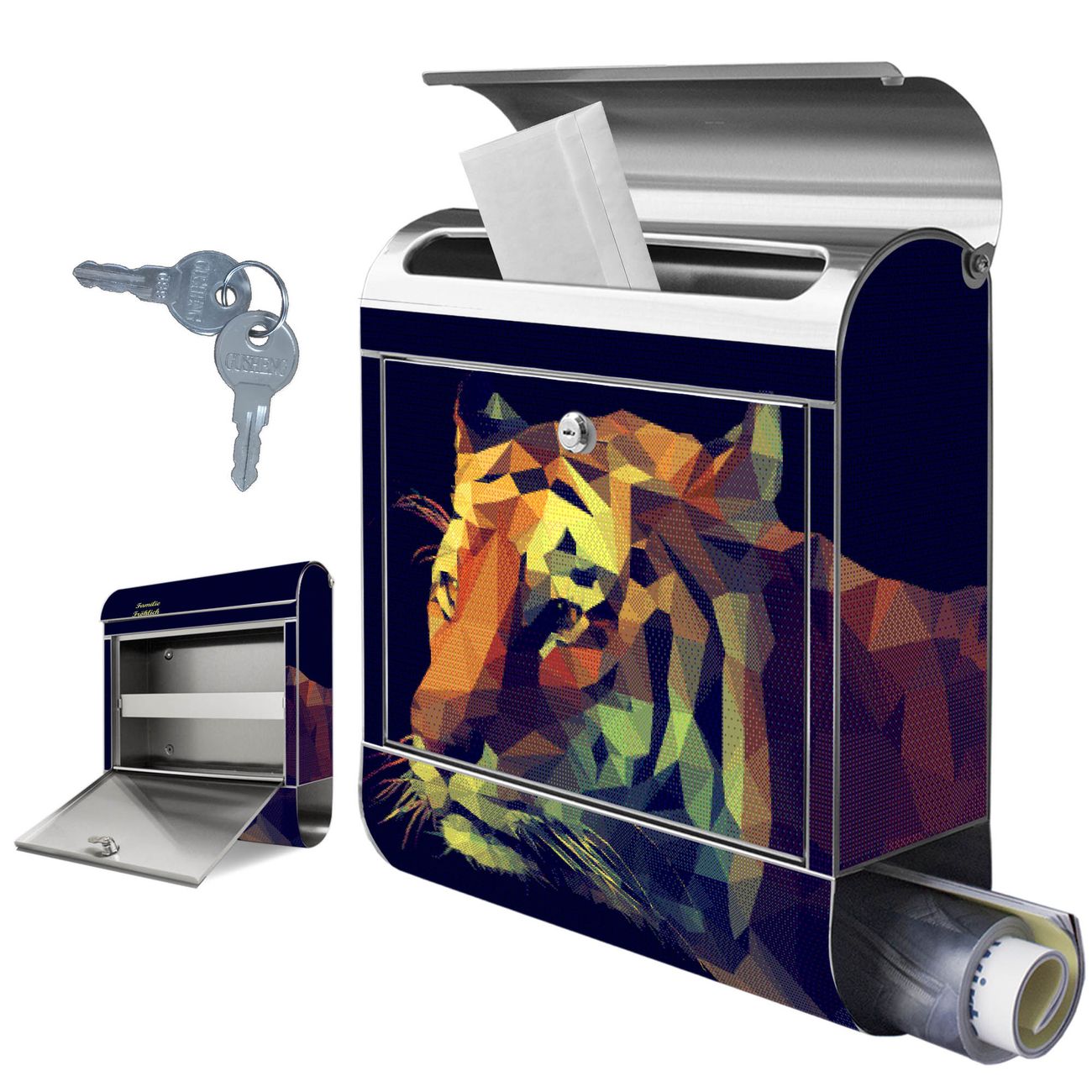 Wandbriefkasten Edelstahl Motiv Polygon Tiger