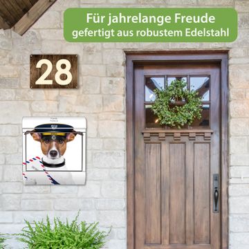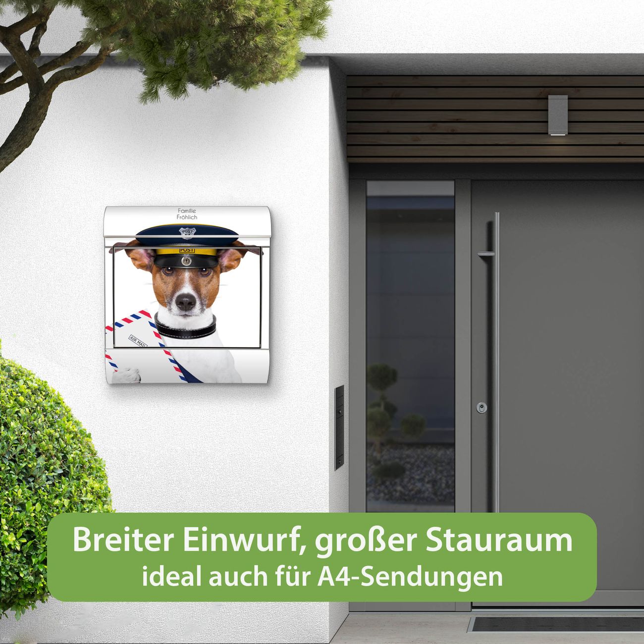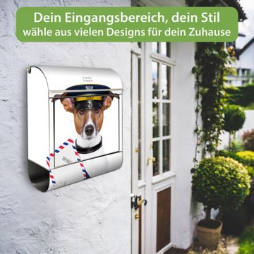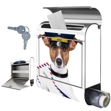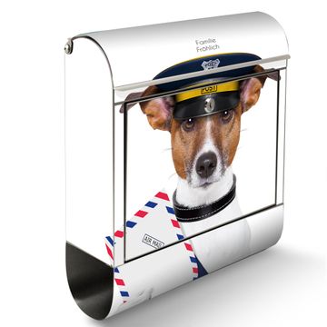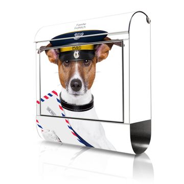 Wandbriefkasten Edelstahl Motiv Postbote Jack Russel