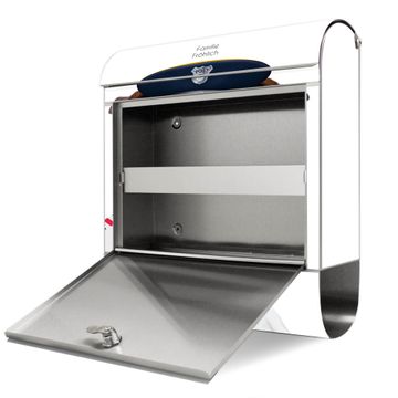 FUNKTION: Der banjado Edelstahl Briefkasten mit Motiv Motiv Postbote Jack Russel bietet Ihnen mit seinem Fassungsvermögen genügend Platz auch für große A4 Sendungen. Das integrierte Zeitungsfach eignet sich hervorragend um unkompliziert die Tageszeitung zu fassen. Auf Wunsch können Sie bei uns den passenden Ständer kaufen und so aus dem Wandbriefkasten einen Standbriefkasten machen. DESIGN: Der Motivbriefkasten hat ein sehr ansprechendes und ausgefallenes Design, damit entlocken Sie Ihren Nachbarn und dem Postboten ein Lächeln. Heben Sie Sich ab von der tristen grauen Masse ohne auf Funktionalität zu verzichten. DETAILS: Der Design Briefkasten mit Motiv Motiv Postbote Jack Russel besteht aus hochwertigem 18/0 Edelstahl. Das Motiv besteht aus einer wetter- und UV-resistenten Folie, die mit einem Schutzlaminat überzogen ist. Der Briefkasten wird mit Montagematerial und zwei Schlüsseln geliefert. NUTZEN: Sie können diesen Briefkasten sowohl als Wandbriefkasten montieren oder einen passenden Ständer auswählen und als Standbriefkasten einbetonieren. Die Größe bietet genügend Platz für Sendungen aller Art, das hochwertige Edelstahl ist rostfrei und die Motivfolie absolut wetterfest. SCHUTZ: Um Ihre Post optimal vor Witterungseinflüssen wie Starkregen zu schützen, empfehlen wir, den Briefkasten geschützt anzubringen. BANJADO: Ihr Briefkasten wird in Sachsen in einer kleinen Manufaktur von Hand veredelt. Die Motivfolie ist lösungsmittelfrei und schutzlaminiert, dies sorgt für einen langen Halt. Wir legen großen Wert auf die Verbindung von Funktionalität und Design. Sie erhalten Handarbeit aus Sachsen.
