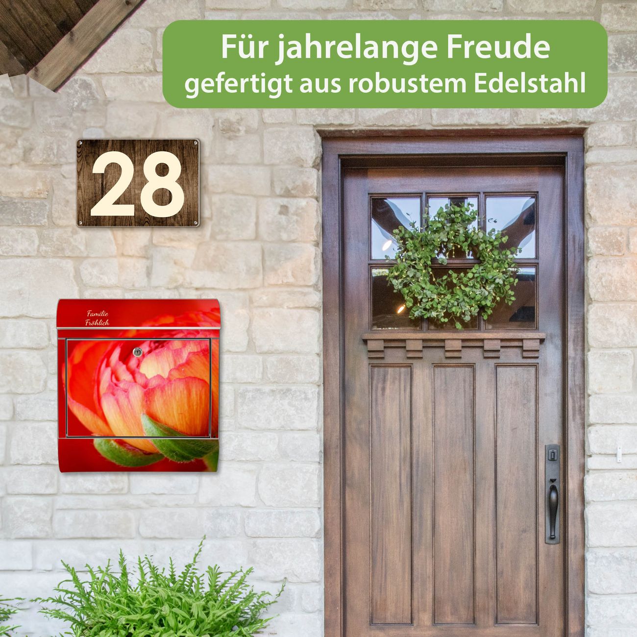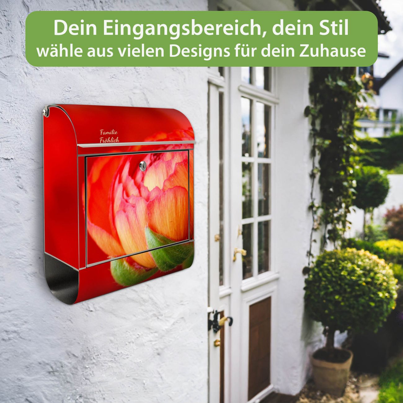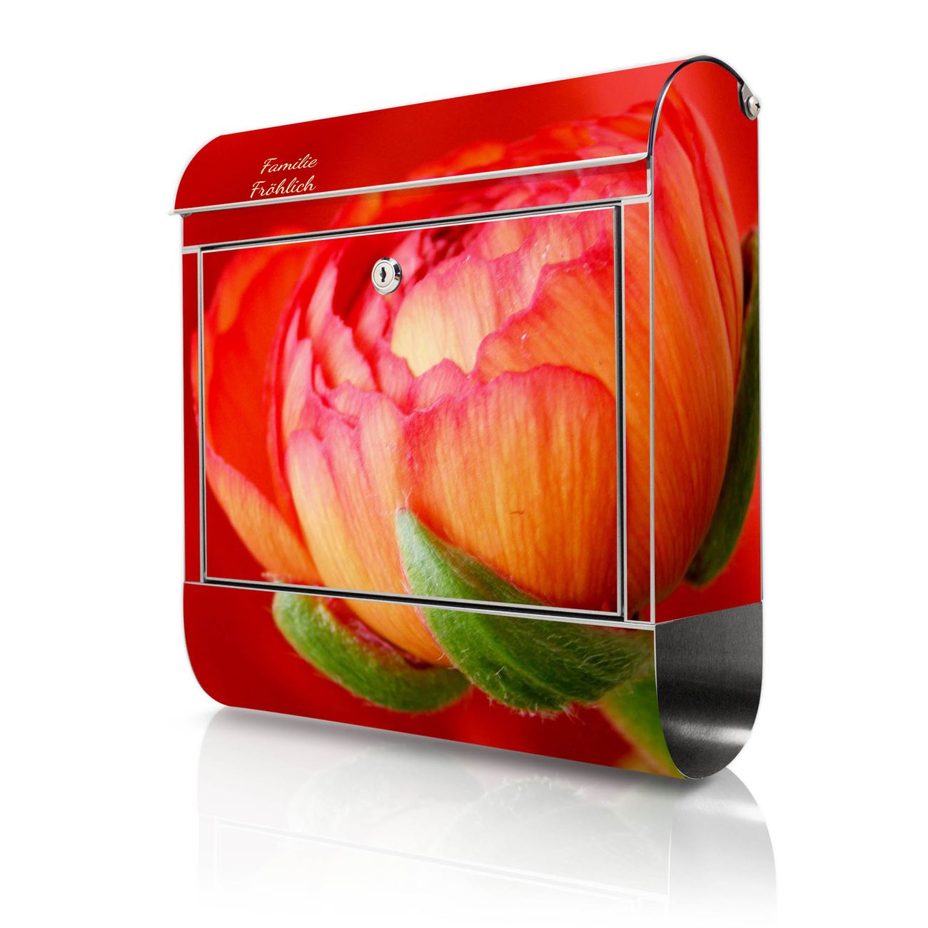 Wandbriefkasten Edelstahl Motiv Ranunkel