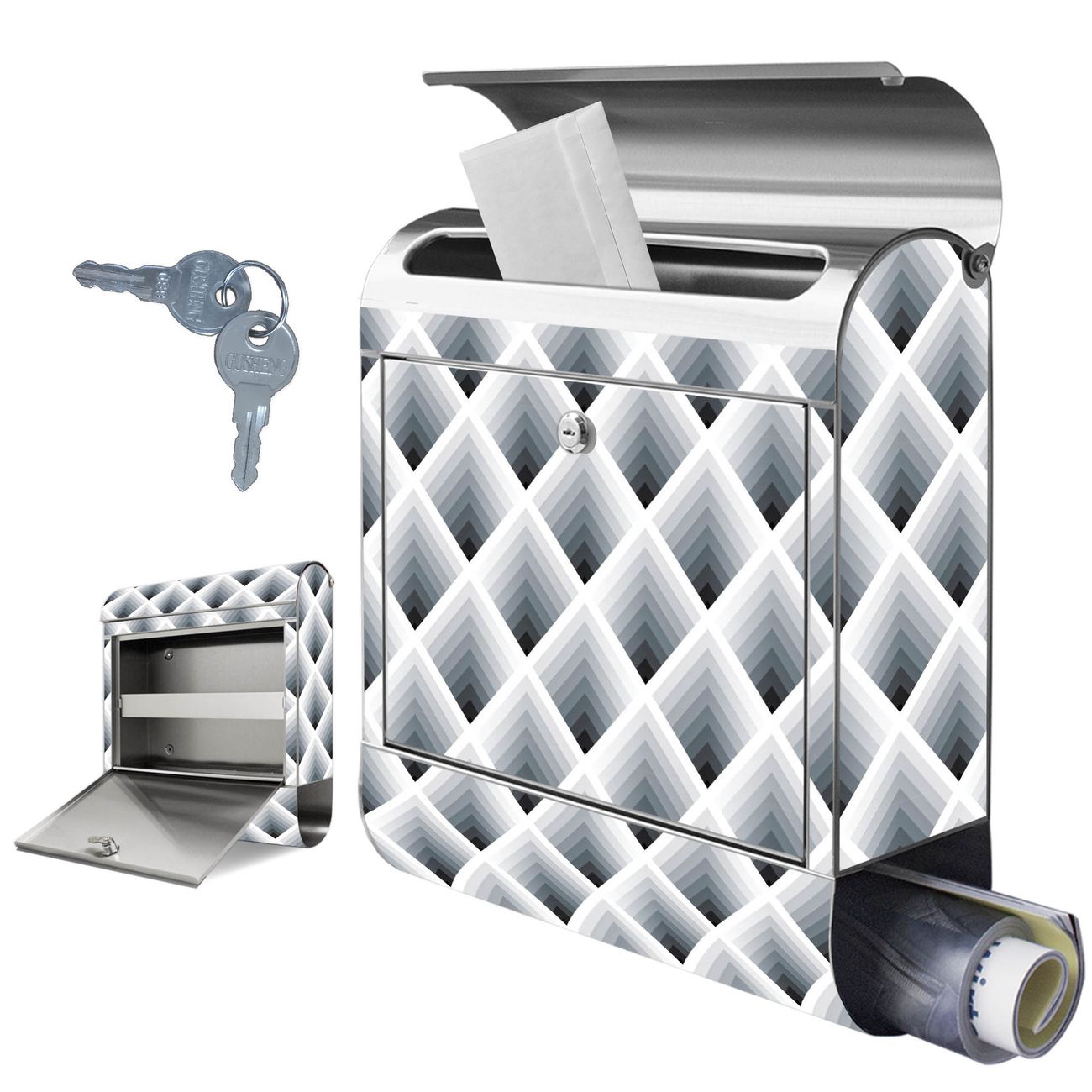 Wandbriefkasten Edelstahl Motiv Raster 3D Grau