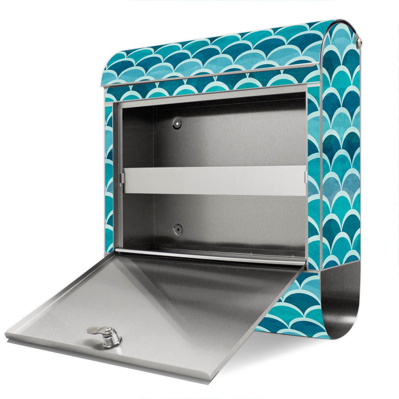 FUNKTION: Der banjado Edelstahl Briefkasten mit Motiv Motiv Raue See bietet Ihnen mit seinem Fassungsvermögen genügend Platz auch für große A4 Sendungen. Das integrierte Zeitungsfach eignet sich hervorragend um unkompliziert die Tageszeitung zu fassen. Auf Wunsch können Sie bei uns den passenden Ständer kaufen und so aus dem Wandbriefkasten einen Standbriefkasten machen. DESIGN: Der Motivbriefkasten hat ein sehr ansprechendes und ausgefallenes Design, damit entlocken Sie Ihren Nachbarn und dem Postboten ein Lächeln. Heben Sie Sich ab von der tristen grauen Masse ohne auf Funktionalität zu verzichten. DETAILS: Der Design Briefkasten mit Motiv Motiv Raue See besteht aus hochwertigem 18/0 Edelstahl. Das Motiv besteht aus einer wetter- und UV-resistenten Folie, die mit einem Schutzlaminat überzogen ist. Der Briefkasten wird mit Montagematerial und zwei Schlüsseln geliefert. NUTZEN: Sie können diesen Briefkasten sowohl als Wandbriefkasten montieren oder einen passenden Ständer auswählen und als Standbriefkasten einbetonieren. Die Größe bietet genügend Platz für Sendungen aller Art, das hochwertige Edelstahl ist rostfrei und die Motivfolie absolut wetterfest. SCHUTZ: Um Ihre Post optimal vor Witterungseinflüssen wie Starkregen zu schützen, empfehlen wir, den Briefkasten geschützt anzubringen. BANJADO: Ihr Briefkasten wird in Sachsen in einer kleinen Manufaktur von Hand veredelt. Die Motivfolie ist lösungsmittelfrei und schutzlaminiert, dies sorgt für einen langen Halt. Wir legen großen Wert auf die Verbindung von Funktionalität und Design. Sie erhalten Handarbeit aus Sachsen.