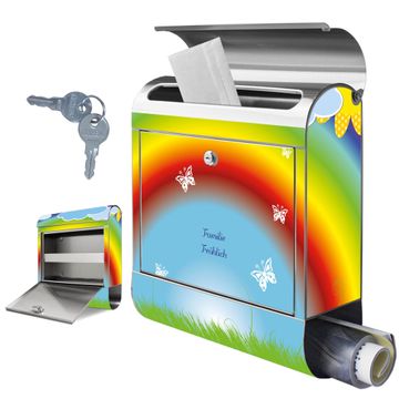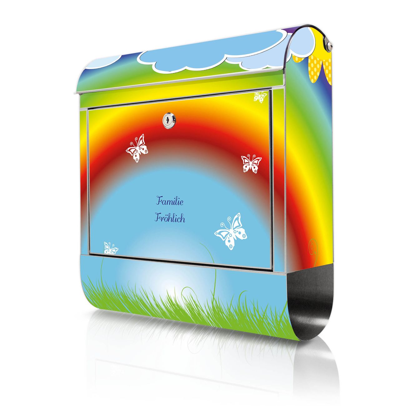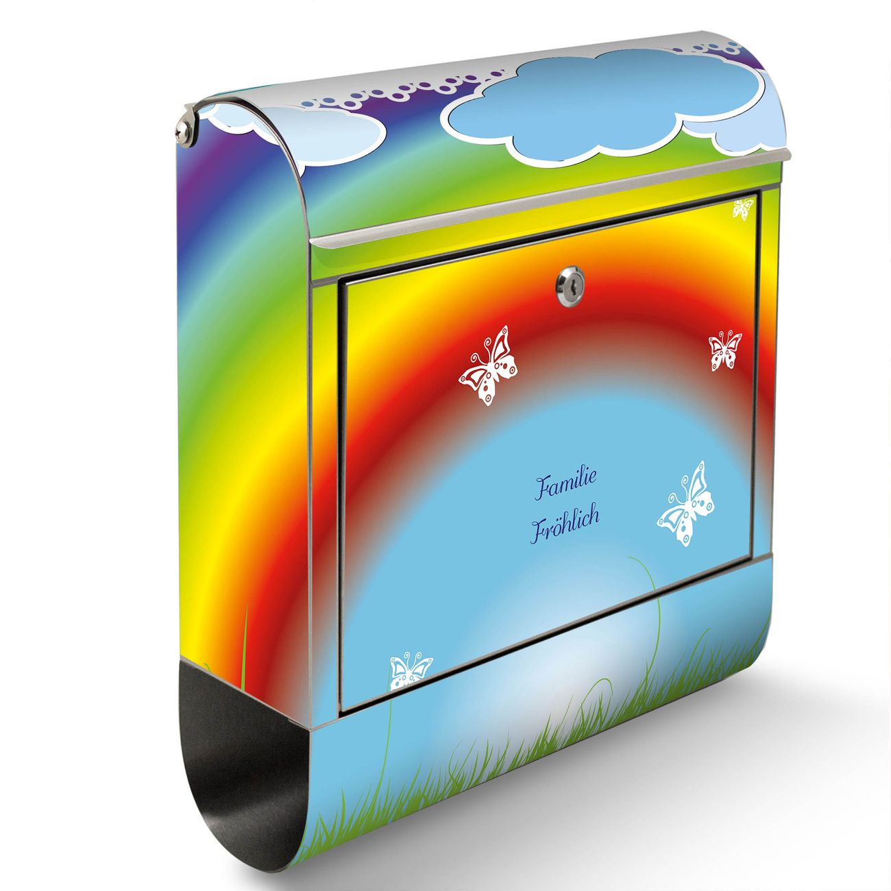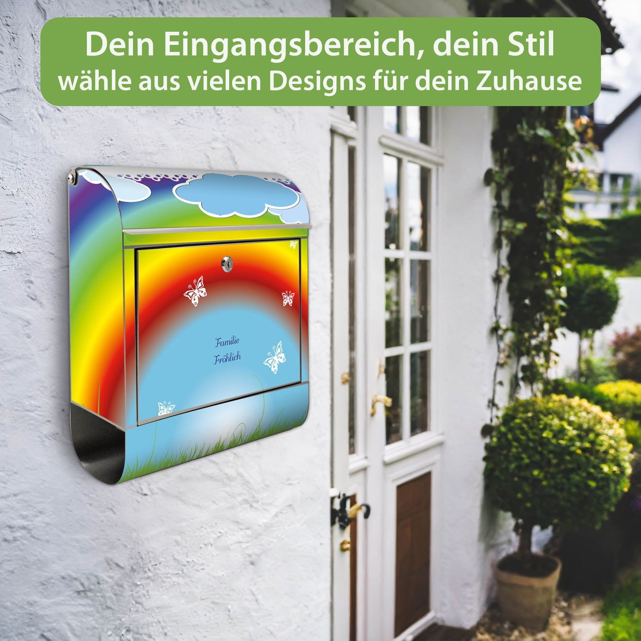 Wandbriefkasten Edelstahl Motiv Regenbogen