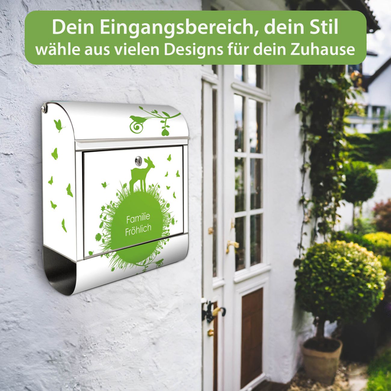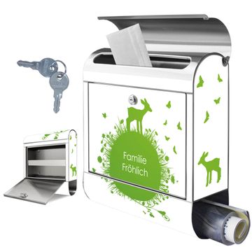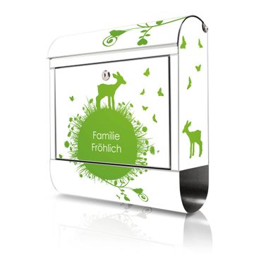 Wandbriefkasten Edelstahl Motiv Rehkitz