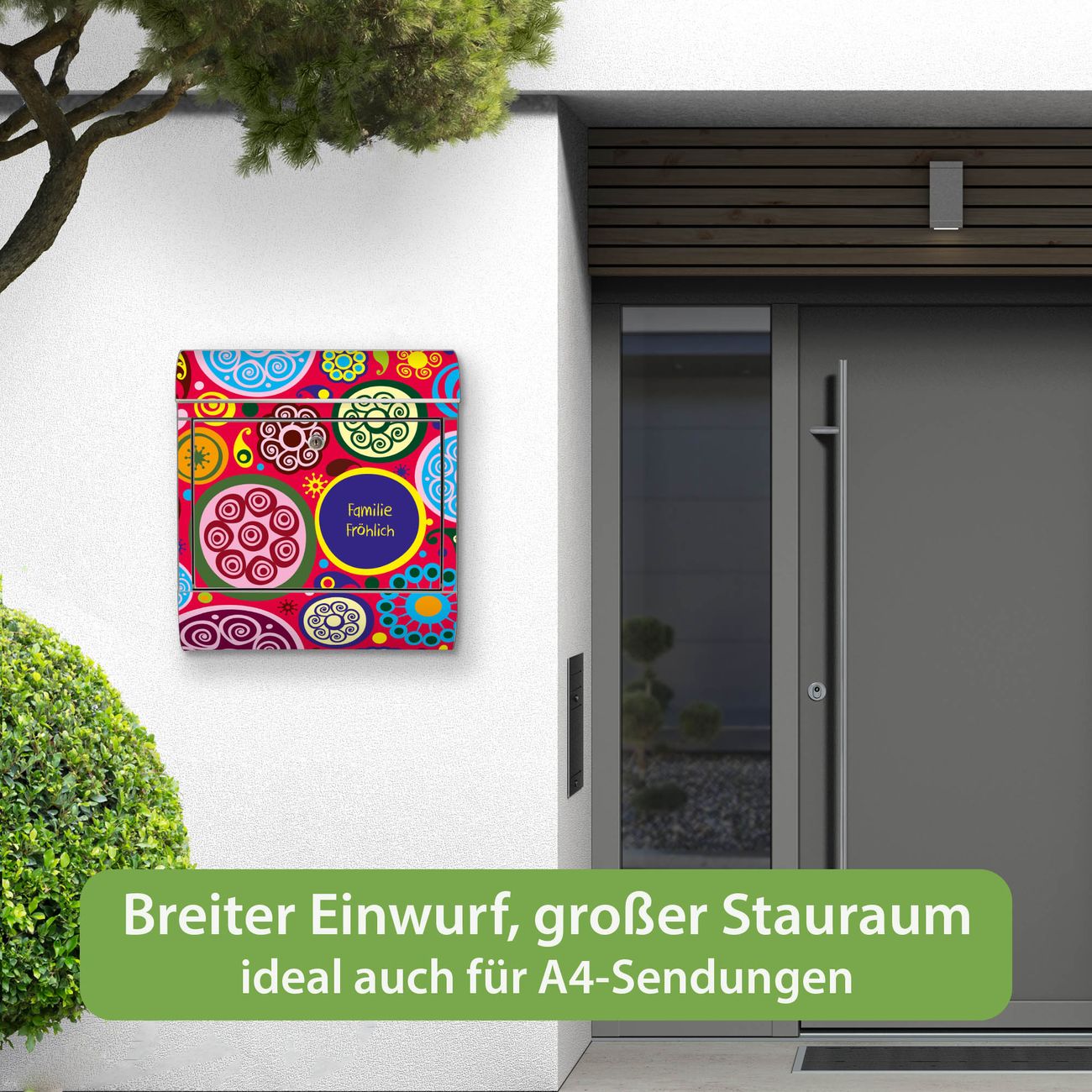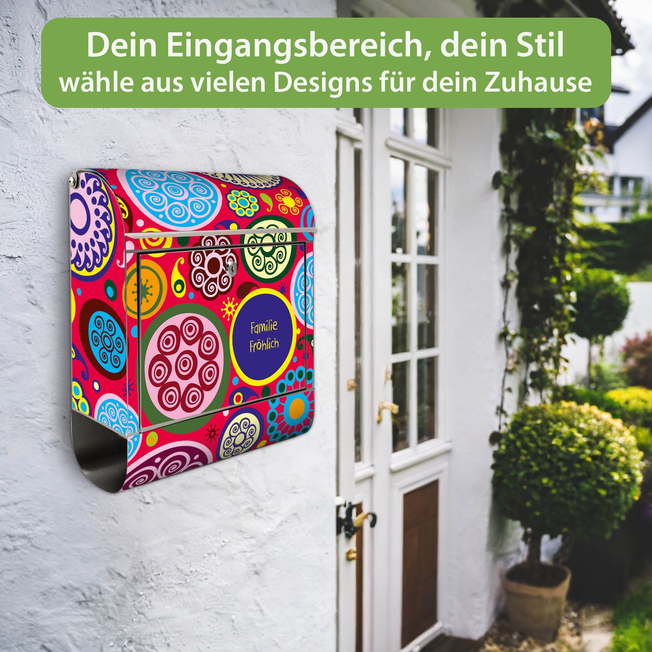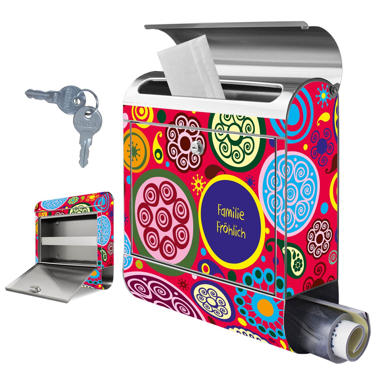 Wandbriefkasten Edelstahl Motiv Retro Kreise